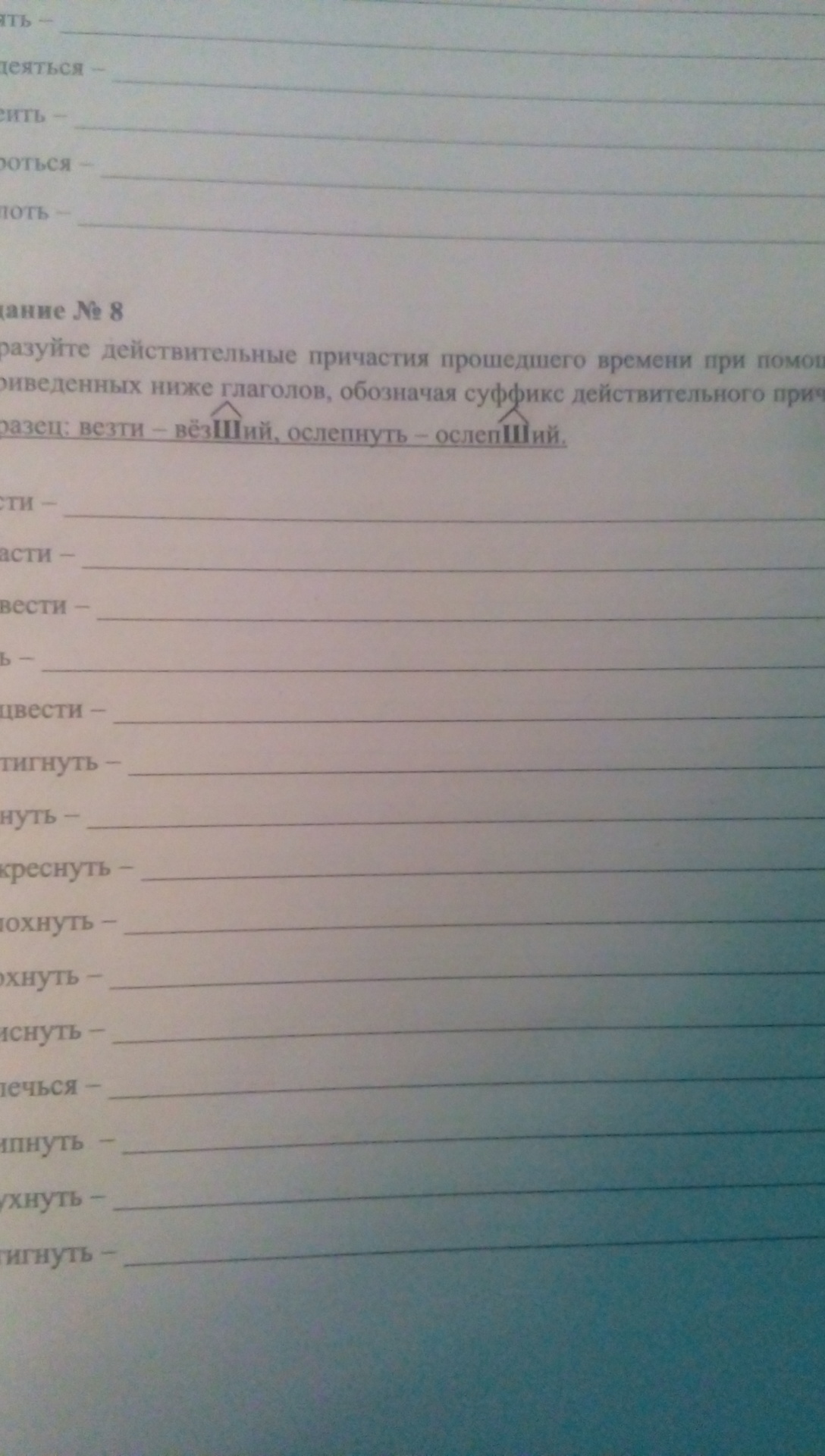 образуйте действительные причастия прошедщего времени при помощи суффикса -ш- от приведенных ниже глаголов