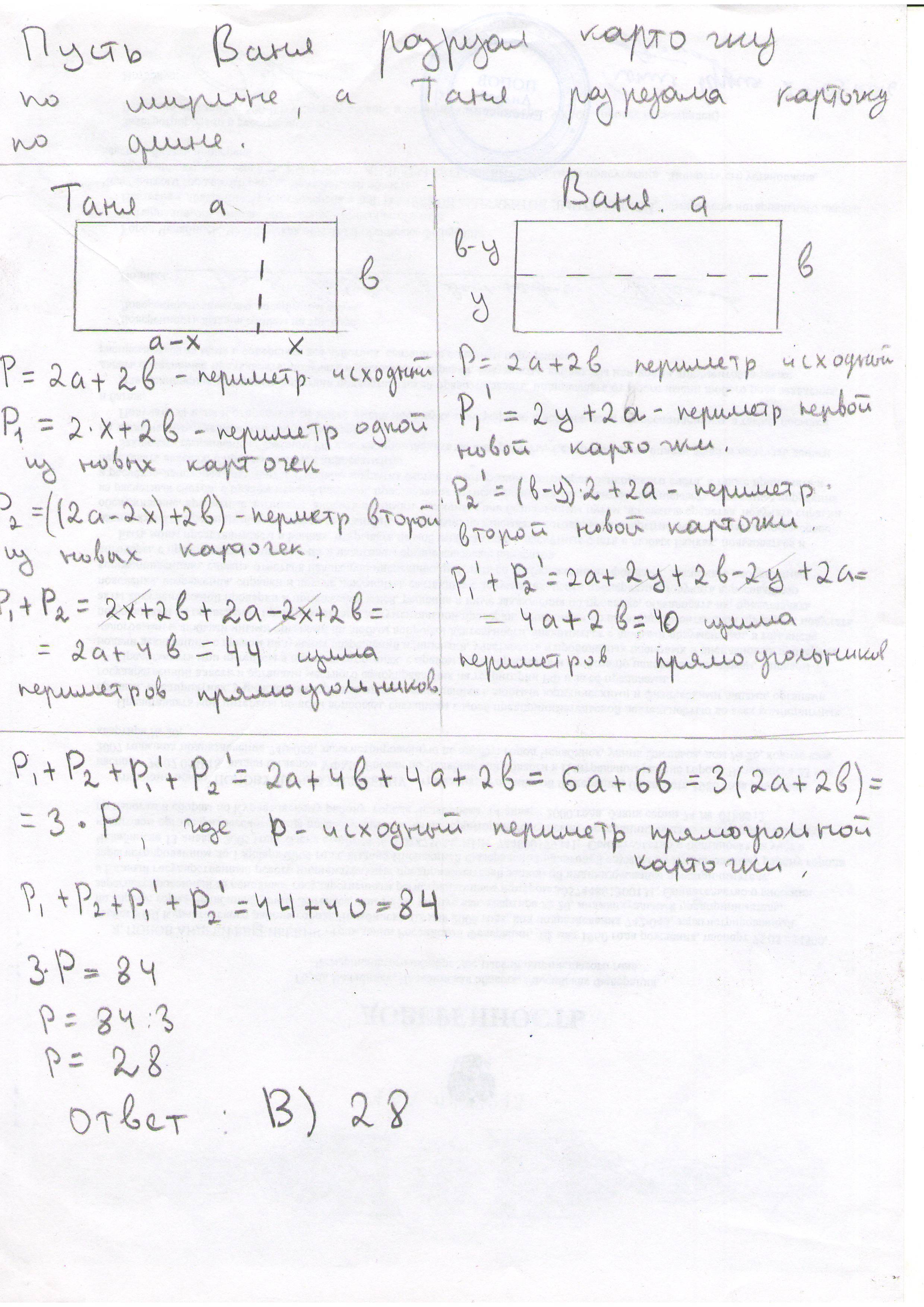 P=28 - исходный периметр карточек