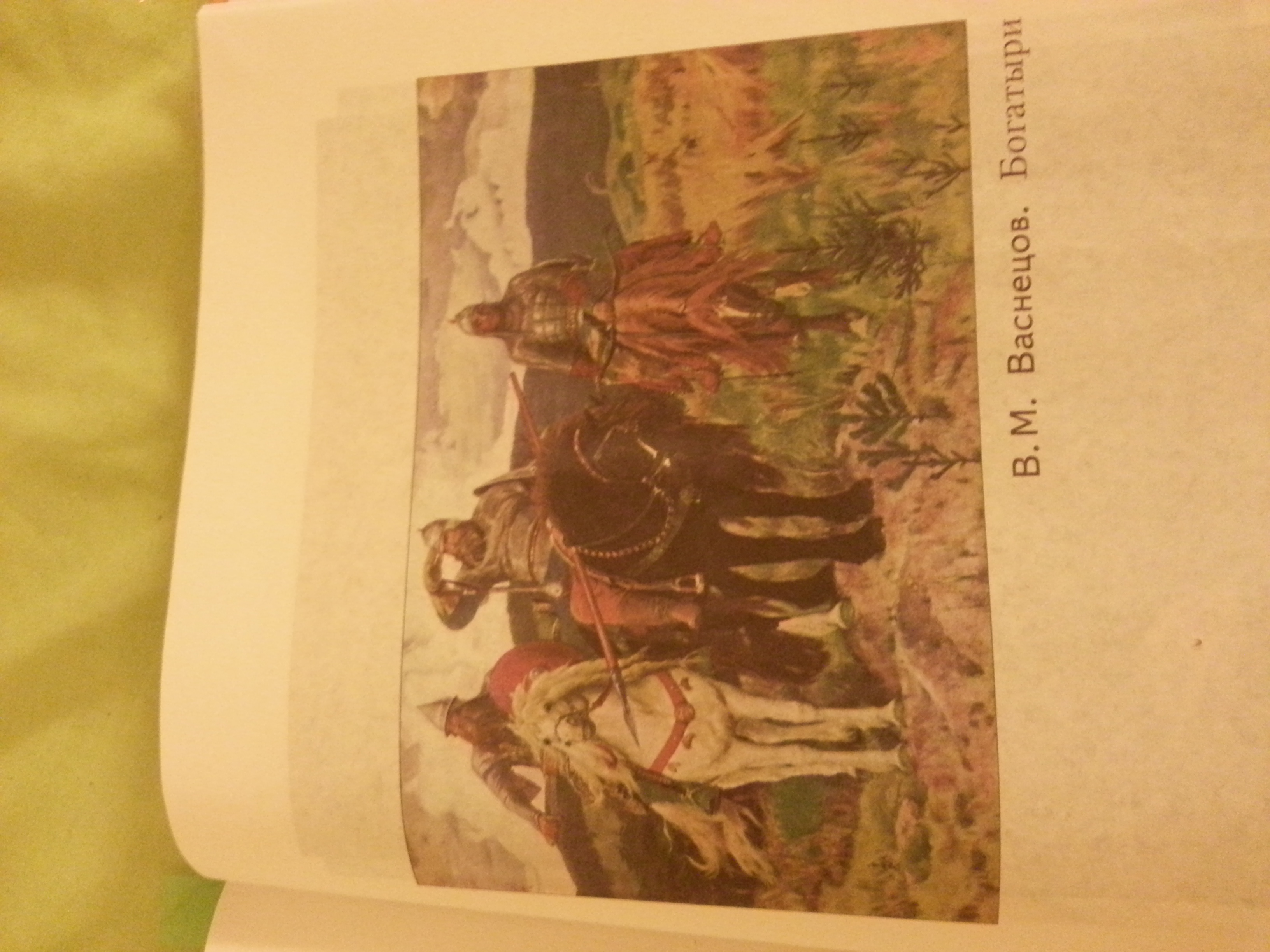 В центре картины изображён Илья Муромец, народный любимец, герой русских былин. Не всем известно, что Илья Муромец не сказочный персонаж, а реальное историческое лицо. История его жизни и ратных подвигов - это реальные события. Впоследствии, закончив свои труды по охране родины, он стал монахом Киево-Печёрского монастыря. Был причислен к лику святых. Васнецов эти факты знал, создавая образ Ильи Муромца. "Матёр человек Илья Муромец" - говорит былина. А на картине Васнецова мы видим могучего воина и при том бесхитростного открытого человека. В нём сочетаются исполинская сила и великодушие. "А конь под Ильёй лютый зверь" - продолжает сказание. Мощная фигура коня, изображённого на картине с массивной металлической цепью вместо упряжки, свидетельствует об этом.