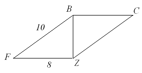В параллелограмме FBCZ одна из диагоналей является высотой. Найдите площадь параллелограмма, если его стороны равны 10 см и 8 см.