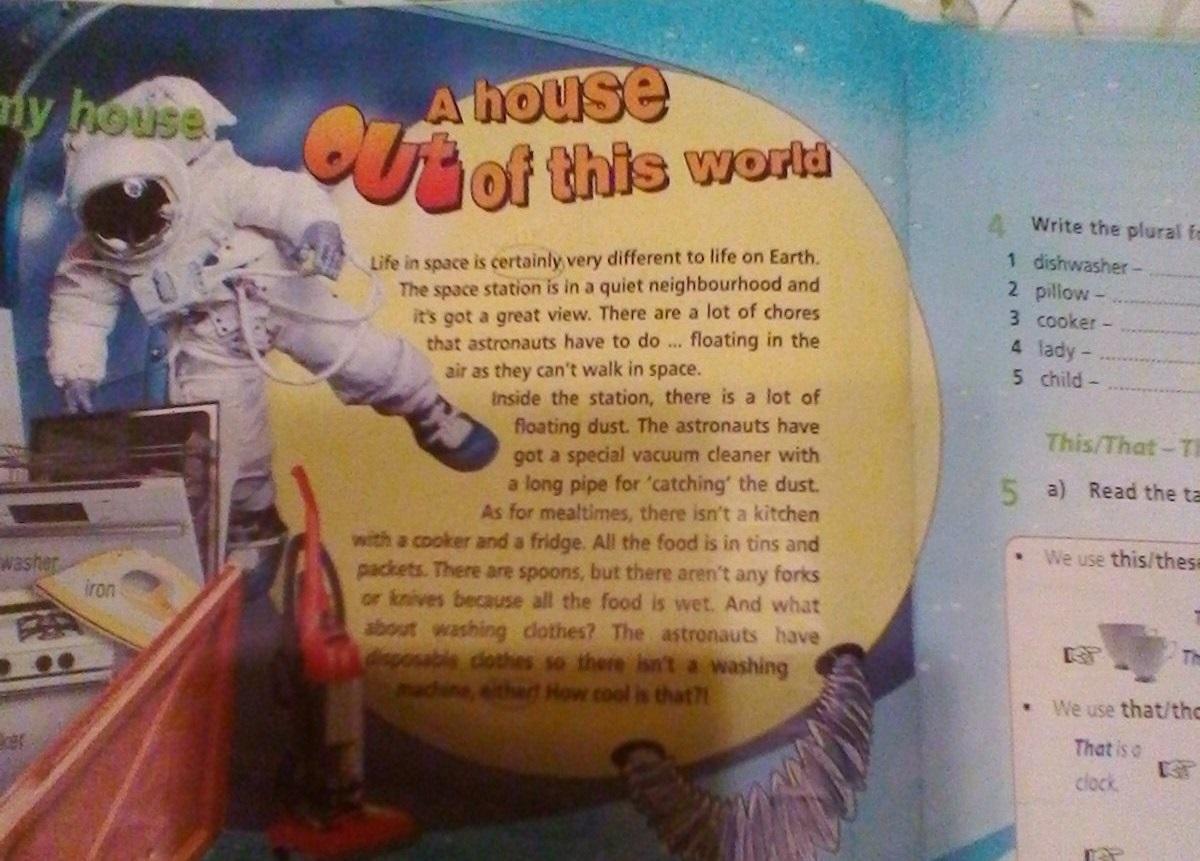 Внутри станции летает много пыли. У астронавтов есть специальный пылесос с длинной трубой для "ловли" пыли. Что касается еды, там нет кухни с плитой и холодильником. Вся еда в консервных банках и пакетиках. Есть ложки, но нет ни вилок, ни ножей, потому что вся еда влажная. А что насчет стирки одежды? У астронавтов одноразовая одежда, поэтому стиральной машины нет тоже. Круто, правда?!