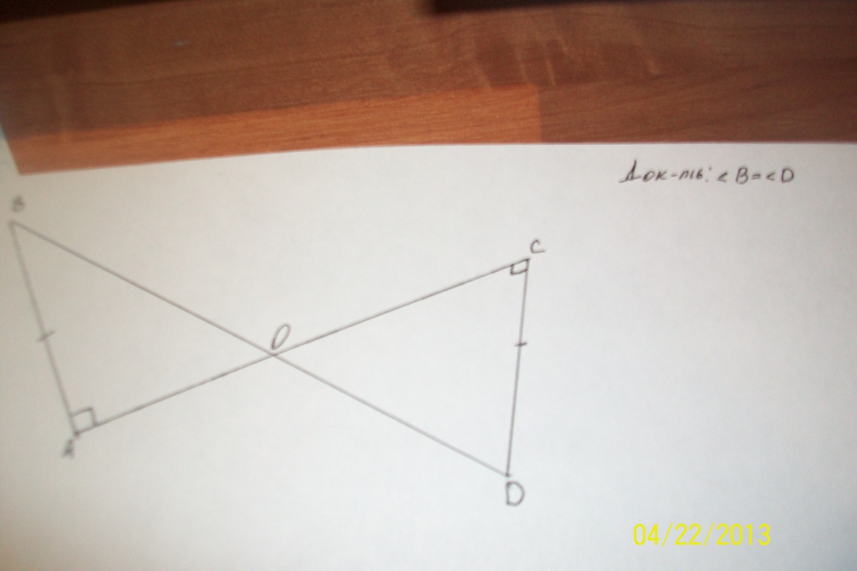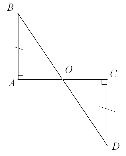 Δ АОВ~ΔСОD, так как АВ=CD и угол АОВ=углу СОD (3-й признак подобия