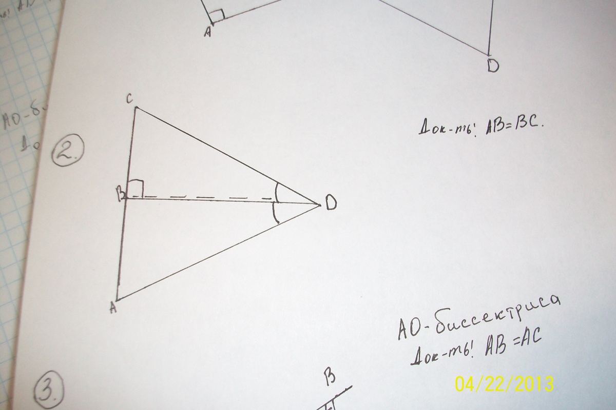 3) ΔСBD =ΔABD по 4-му признаку равенства прямоугольных Δ (АО- общая гипотенуза,