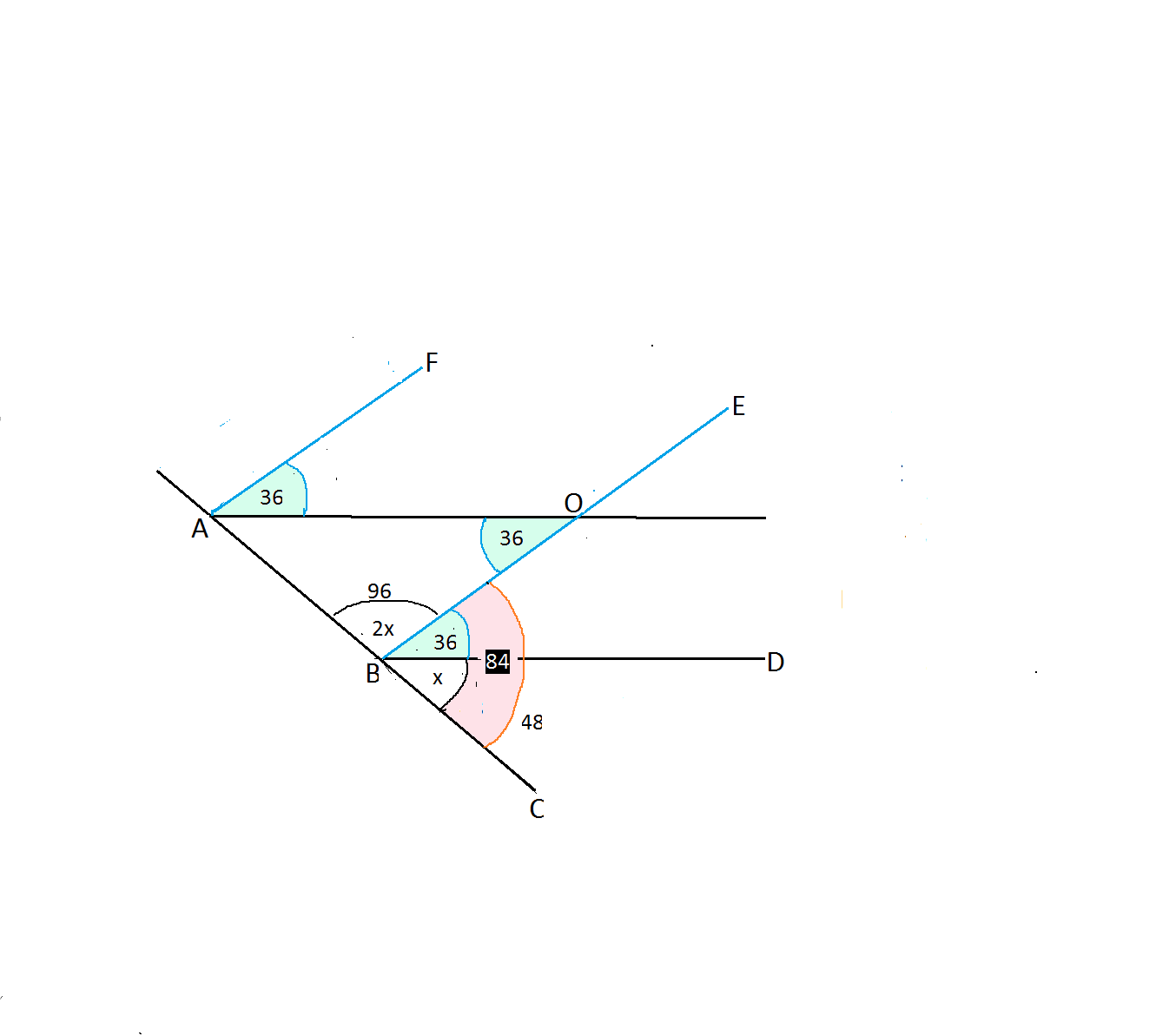 ∠ АОВ=∠FAO=36° как накрестлежащий