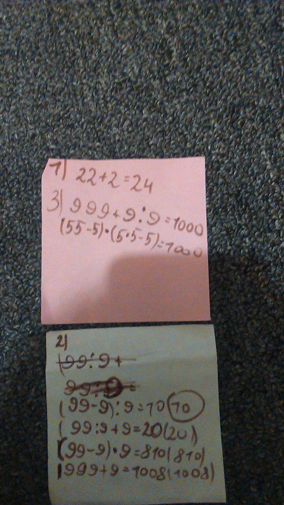 3)число 1.000 пятью девятками или шестью пятёрками