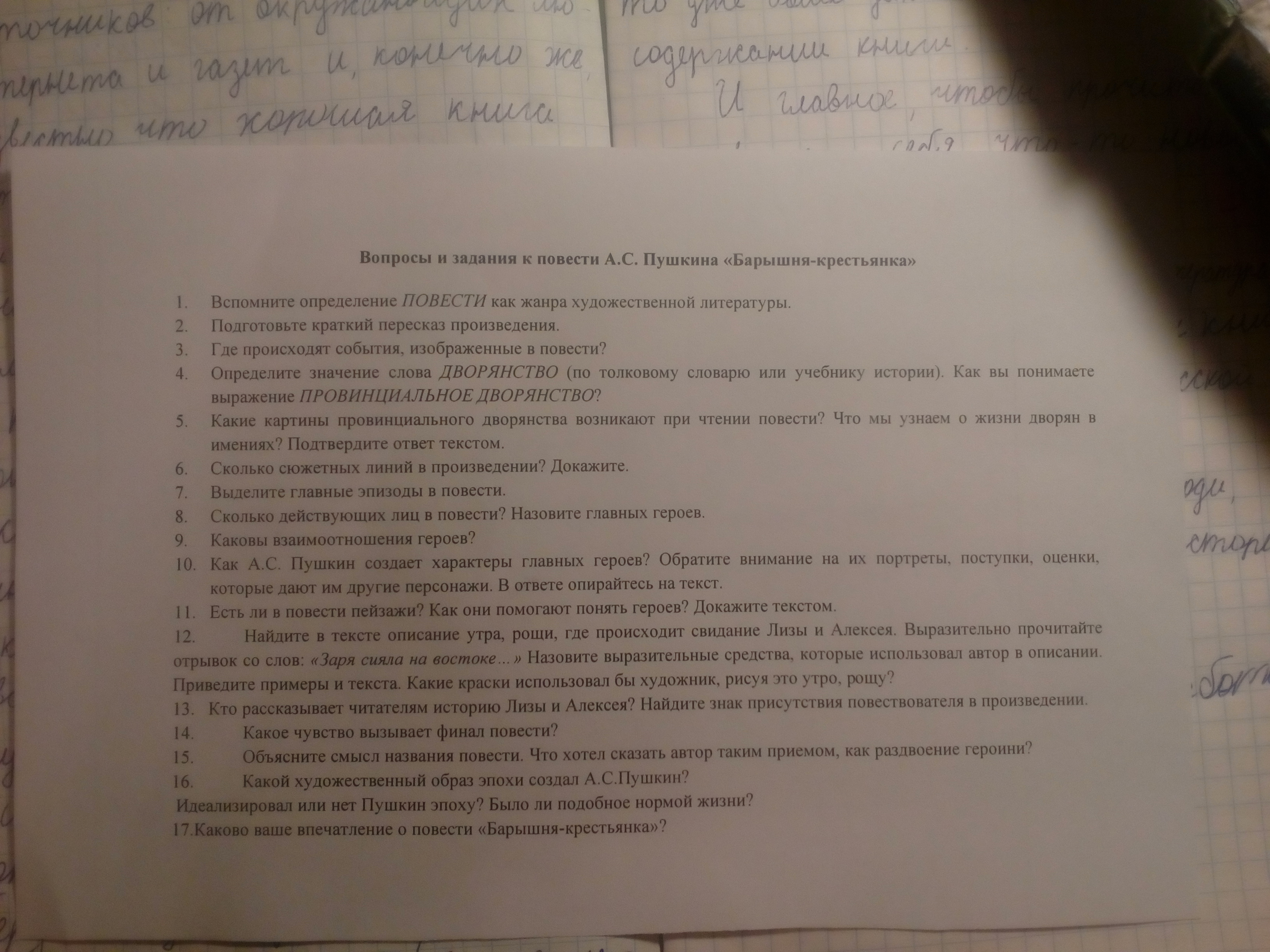 Вопросы и задания к повести А.С Пушкина "Барышня-крестьянка"
