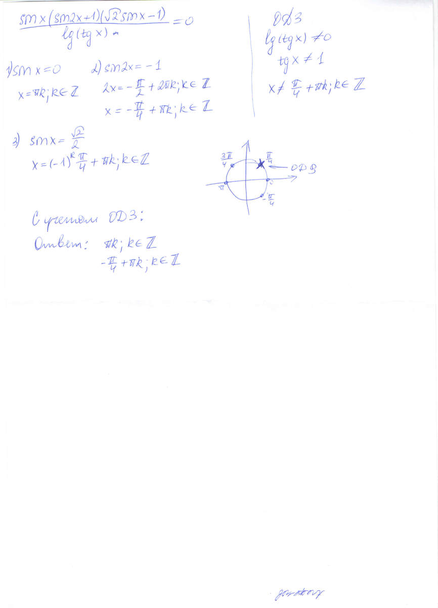 Находим ОДЗ: логарифм равен нулю только когда тангенс х = 1. Дальше всё просто.