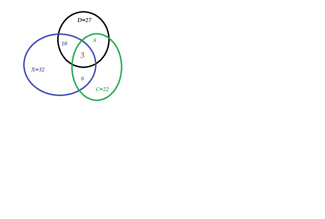 C (D∩C) =22-6-(8-3) =11 (только спорт)