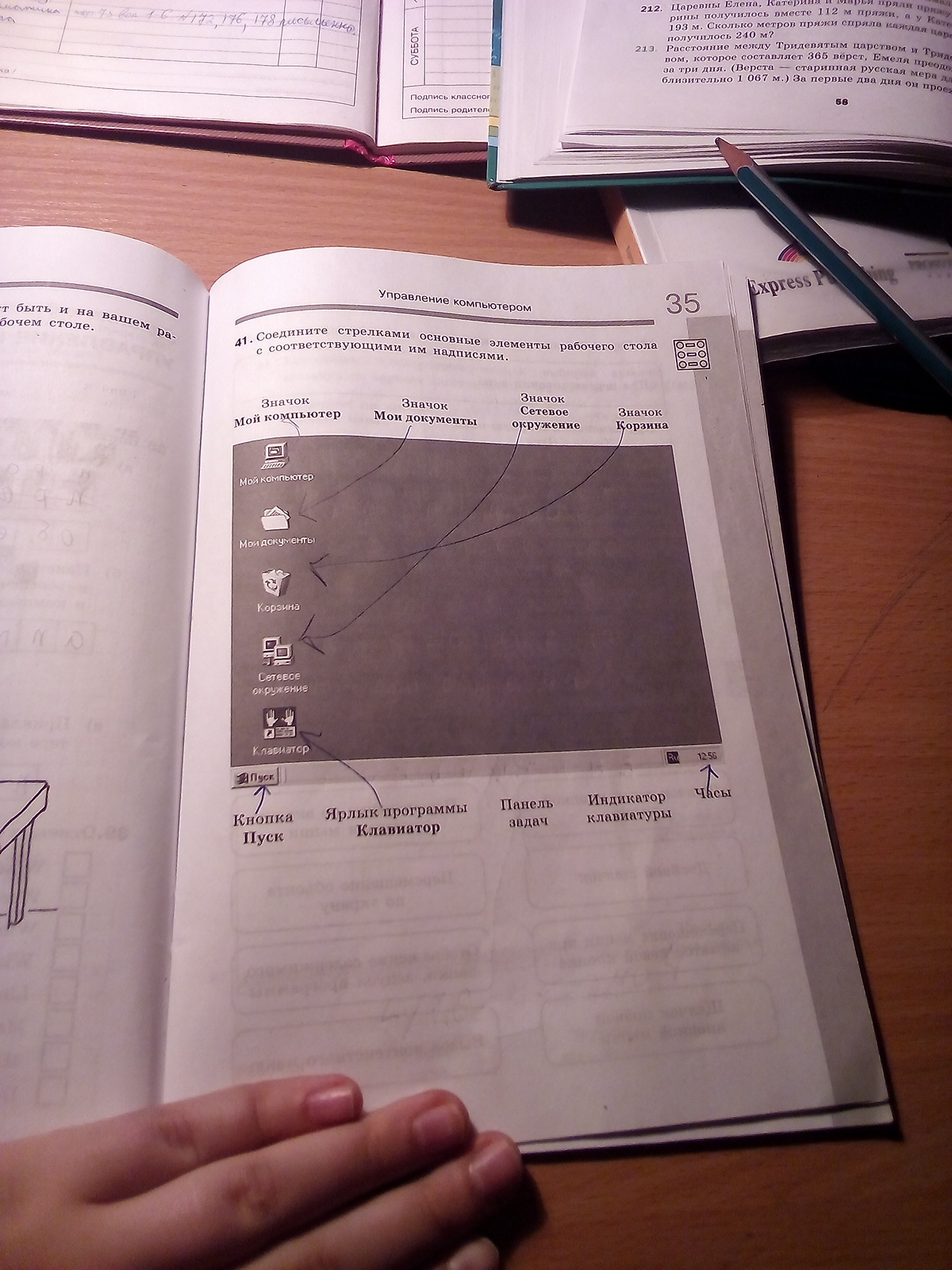 Соедините стрелками основные элементы рабочего стола с соответствующими им надписями.