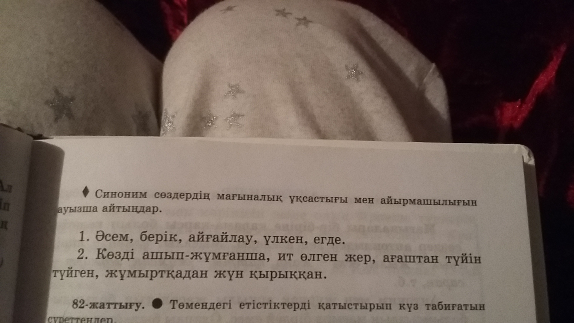 2) козды ашып.....--- тез