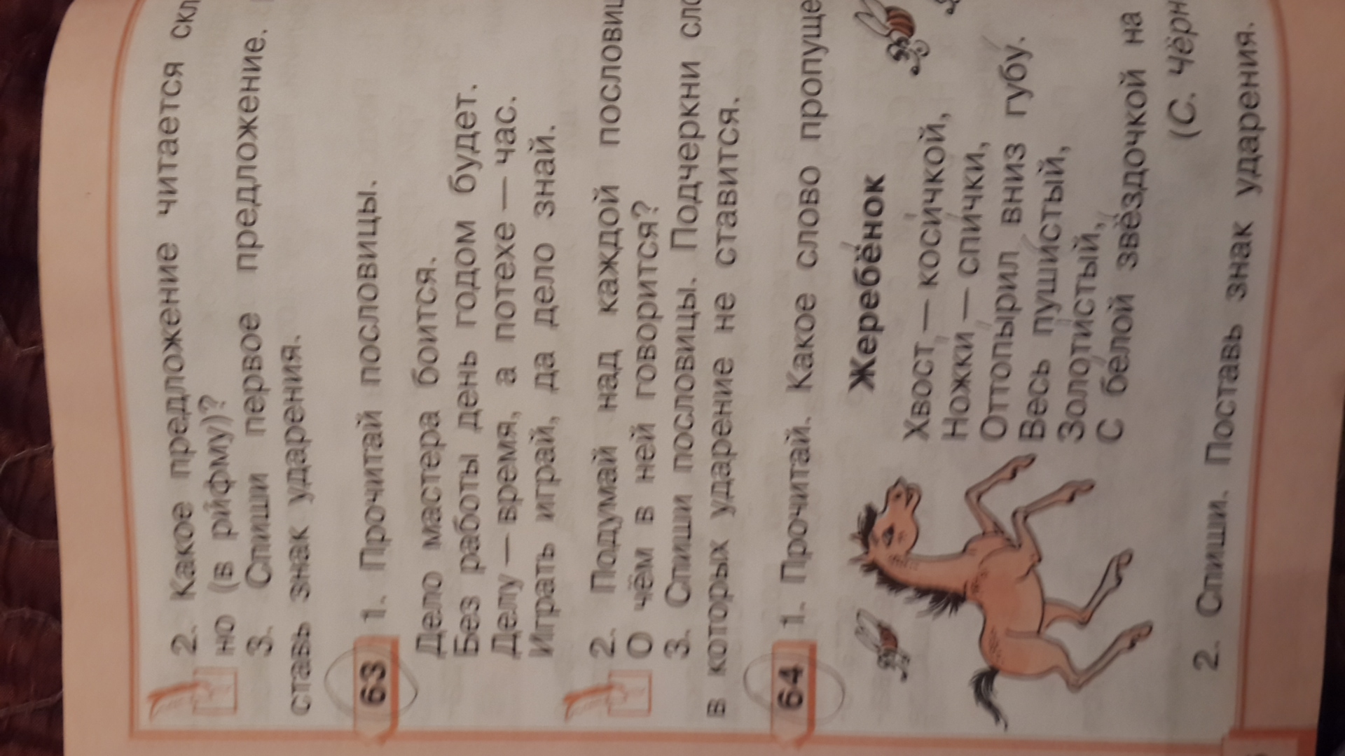 прочитай пословицы 2 подумай над каждой пословице о чем в ней говориться 3 спиши пословицы.подчеркни слова в котрых удрение не ставиться. 63 упраж
