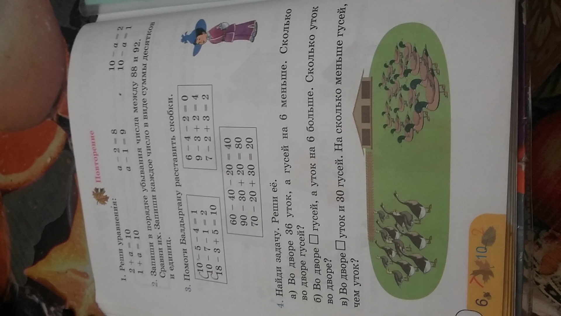 36-30=6 на 6 меньше гусей чем уток.так?