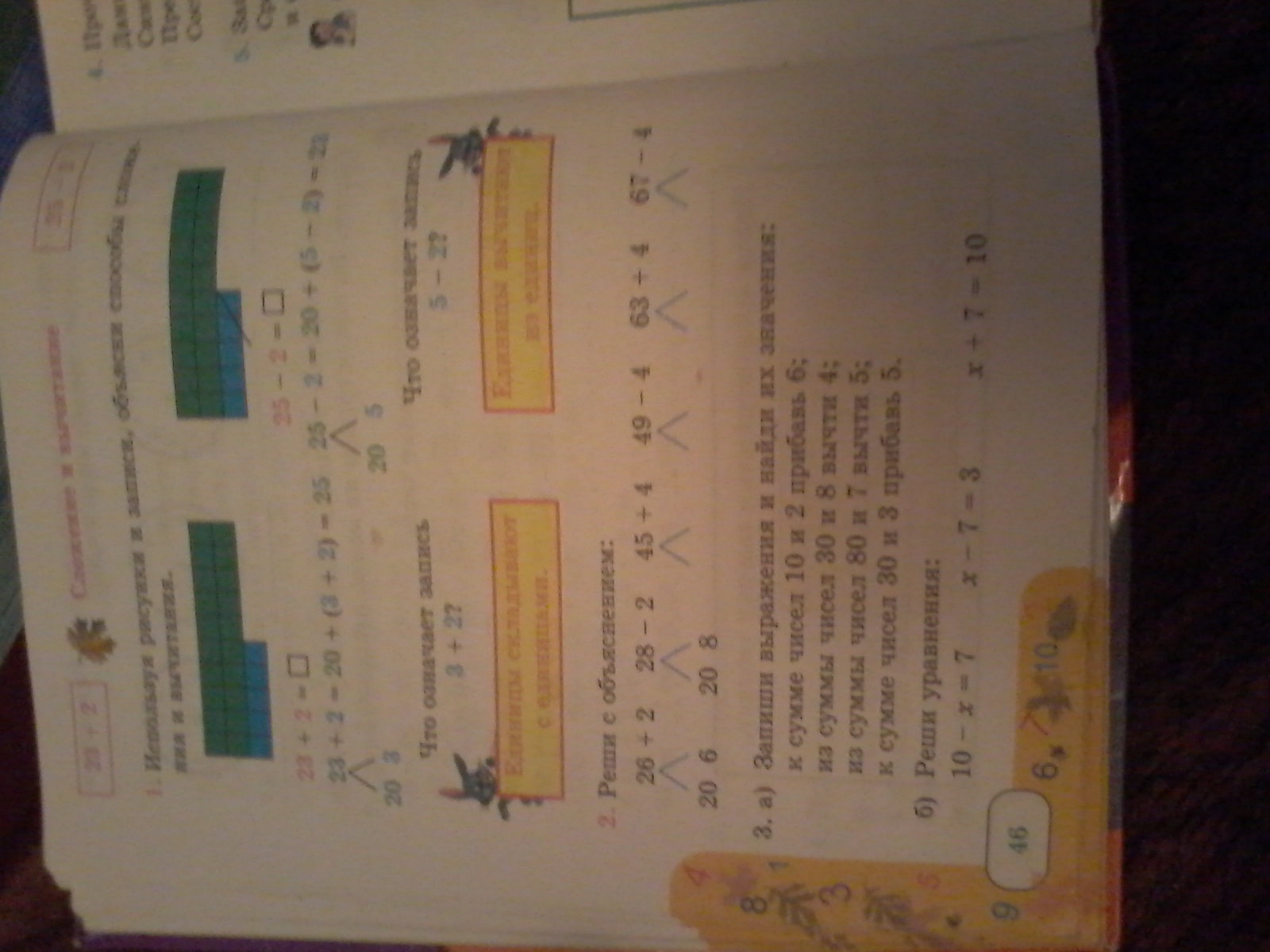 26+2=28 28-2=26 45( это 4 5) +4=49 49( это 4 9)-4=45 63( это 6 3)+4=67 67( это 6 7)-4=63