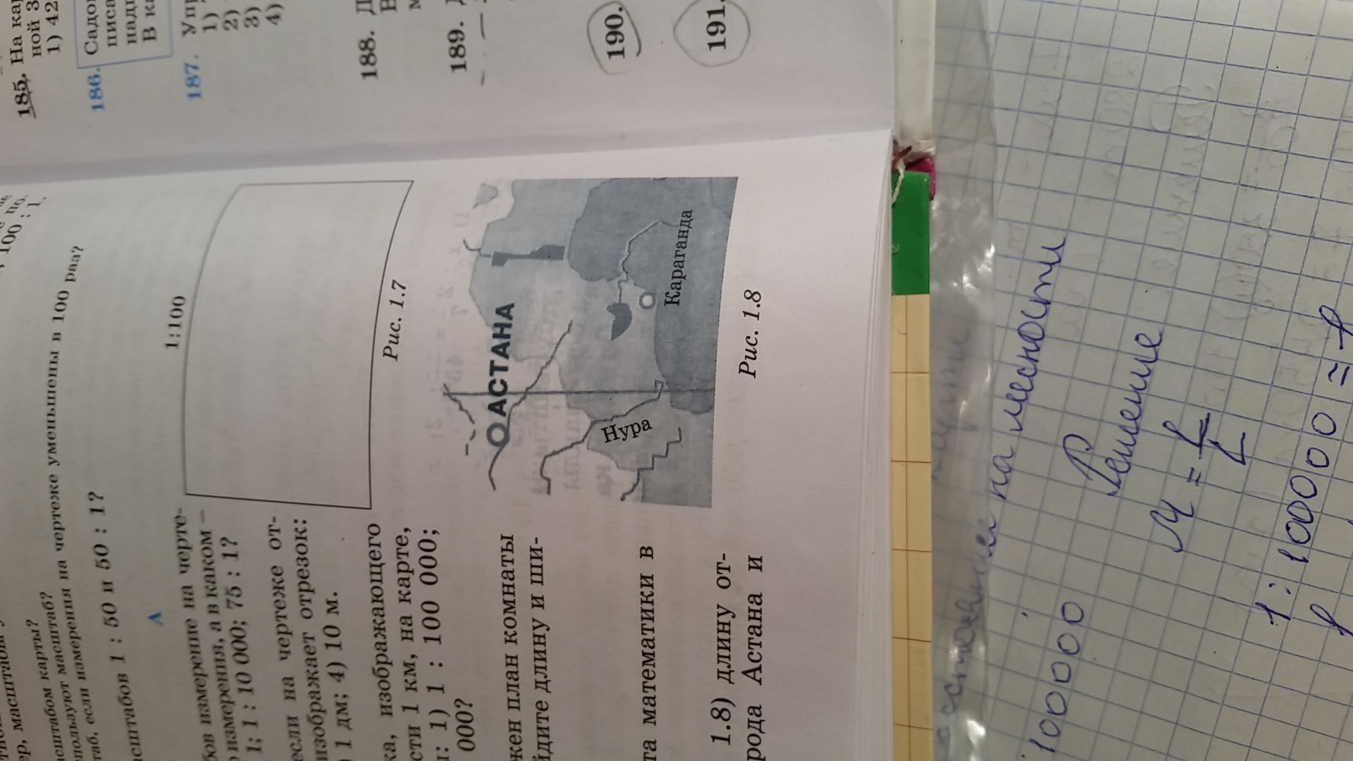 Измерьте на карте ( рис.1.8 ) длину отрезка, соединяющего города Астана и Караганда.Масштаб карты 1 : 7500000. Вычислите расстояние между этими городами на местности.