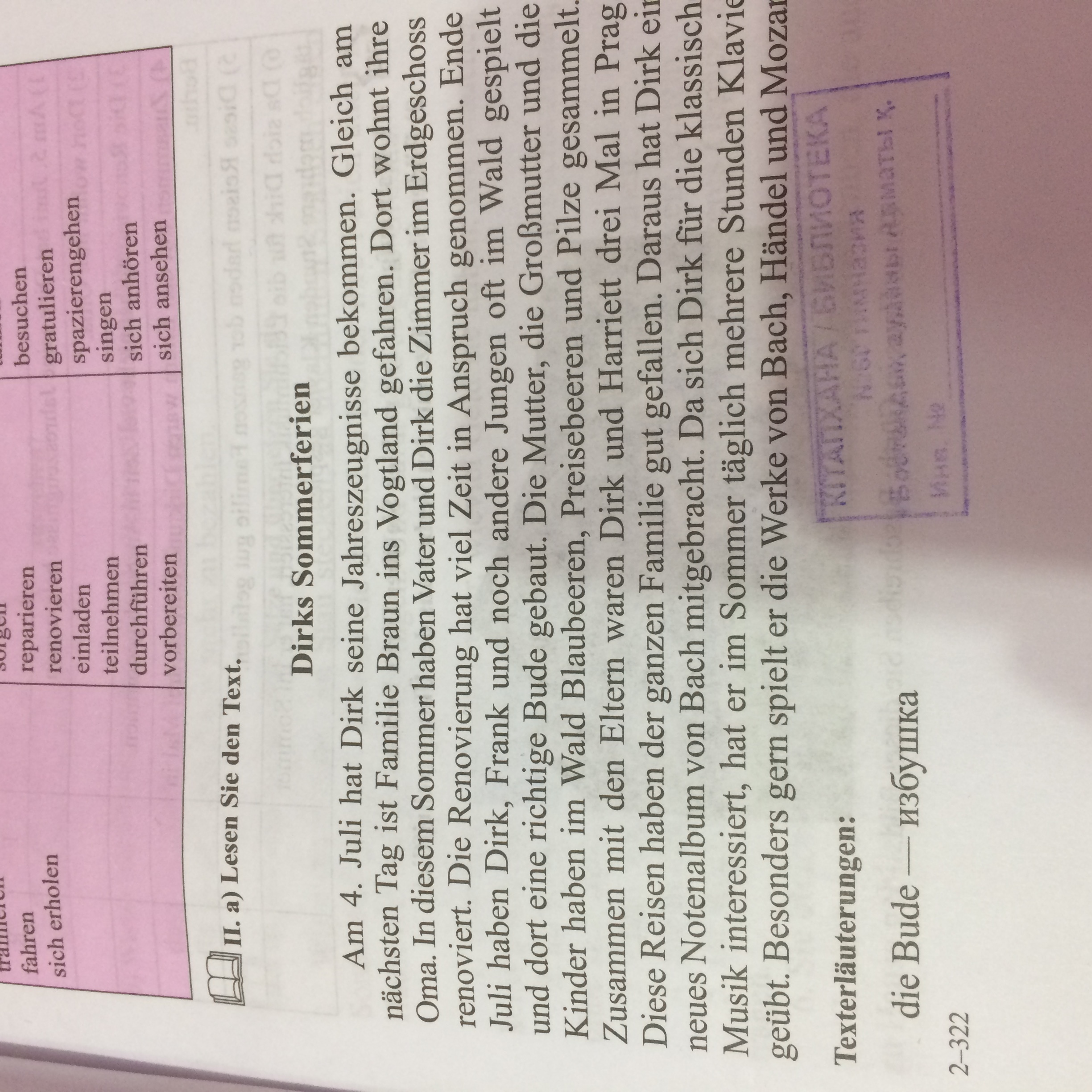 4 июля Дирк получил свои годовые оценки. На следующий день семья Браун поехала в Вогтланд. Там жила их бабушка.Этим летом Дирк и его отец ремонтировали комнату на первом этаже. Ремонт занял много времени.В июле Дирк, Франк и другие ребята часто играли в лесу и построили там настоящую избушку. Мама, бабушка и дети собирали в лесу чернику, бруснику и грибы. Вместе с родителями Дирк и Хариетт три раза были в Праге. Эти путешествия понравились всей семье. Там Дирк приобрел нотную тетрадь с произведениями Баха.Так как Дирк интересовался классической музыкой, летом он много часов занимался на пианино. Особенно охотно он играл произведения Баха, Генделя и Моцарта.