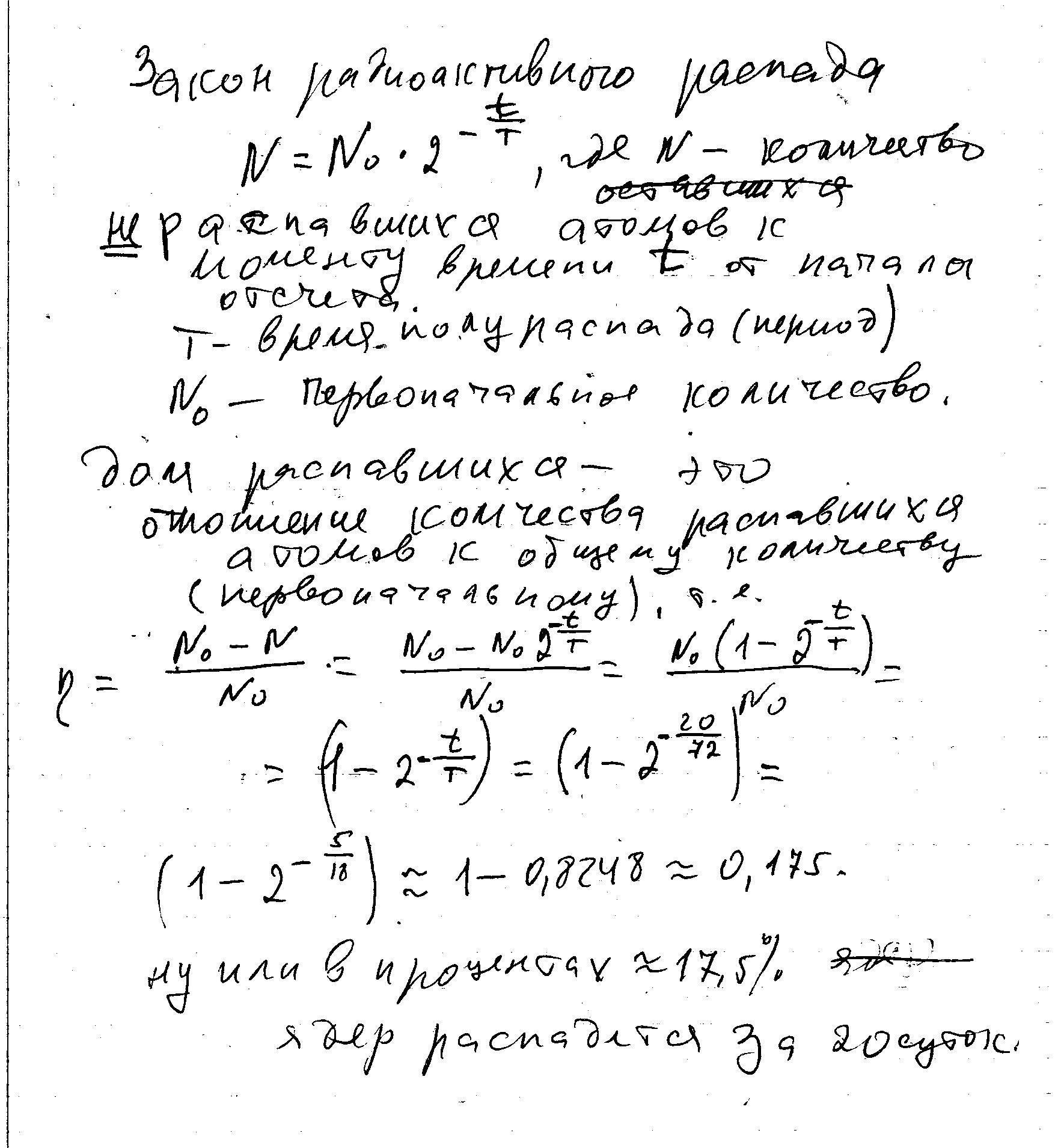 Определите, какая доля атомов радиоактивного изотопа кобальта 58 27 Co распадается за 20 суток, если период его полураспада 72 суток?