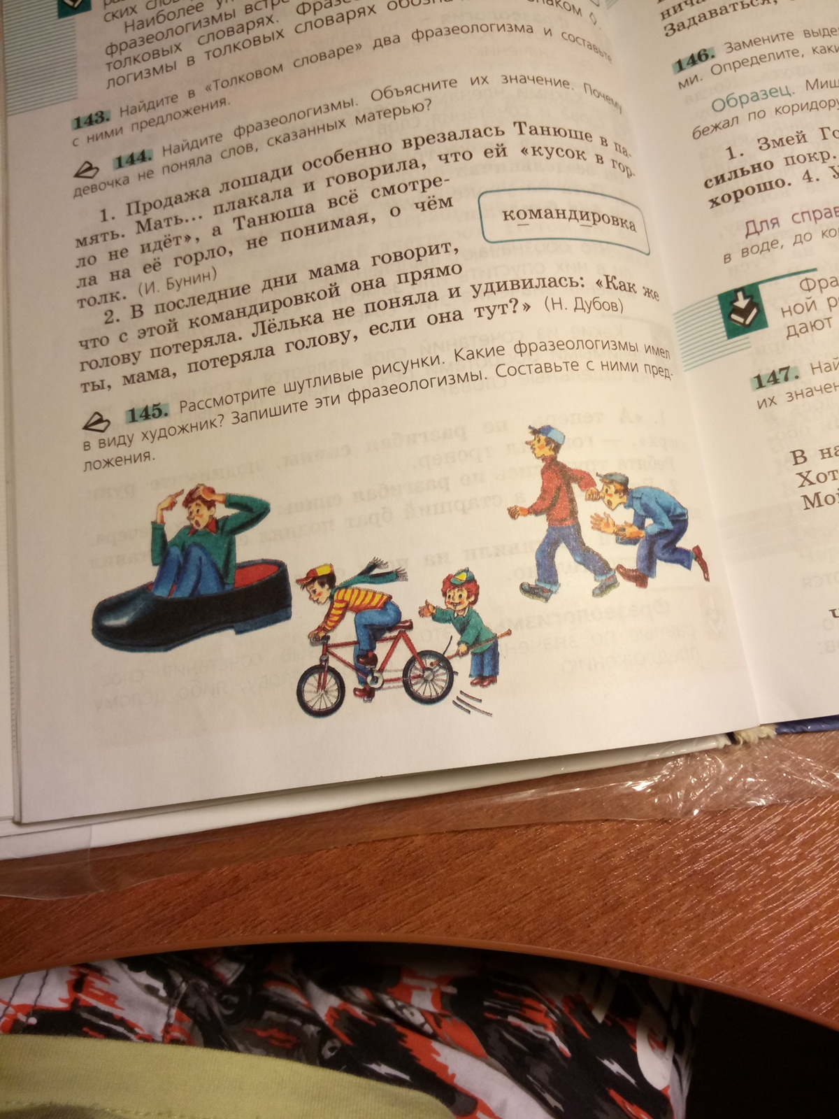 ссмотрите шутливые рисунки.Какие фрезеологизмы имел виду художник?Запишите эти фразеологизмы.Составьте с ними предложения.