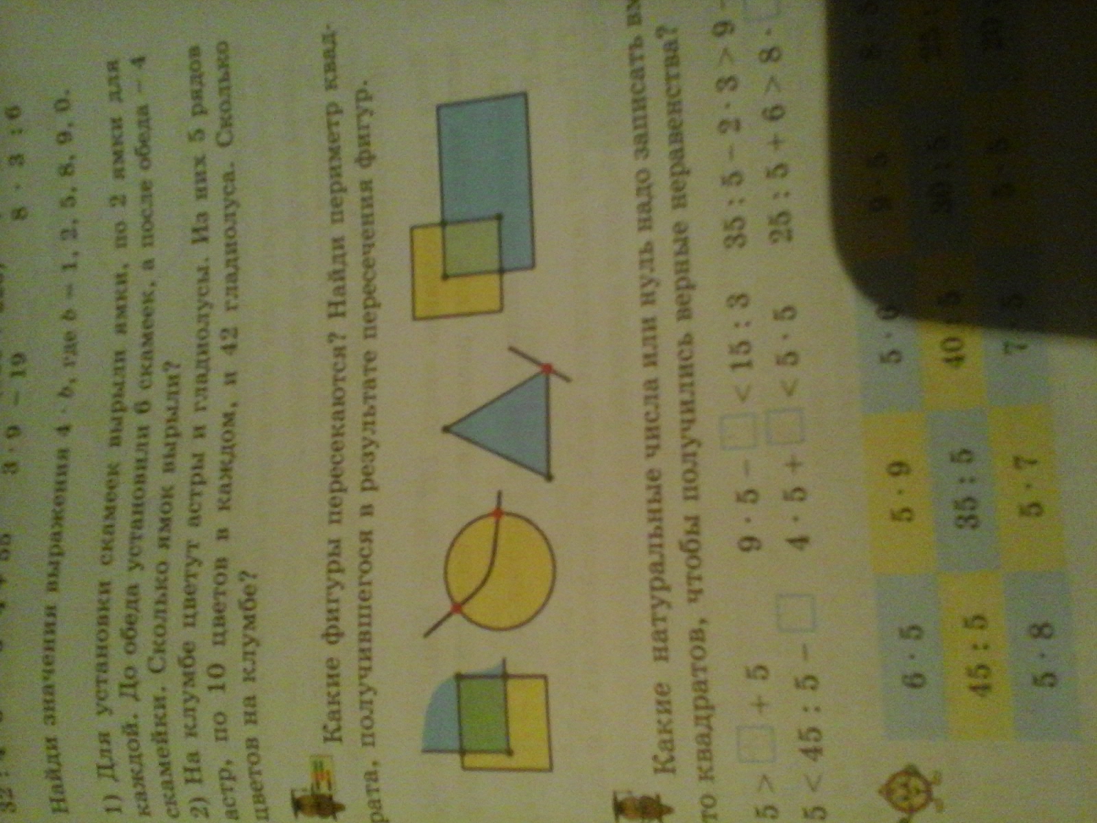 какие фигуры пересекаются? найди периметр квадрата , получившего в результате пересечения фигур.