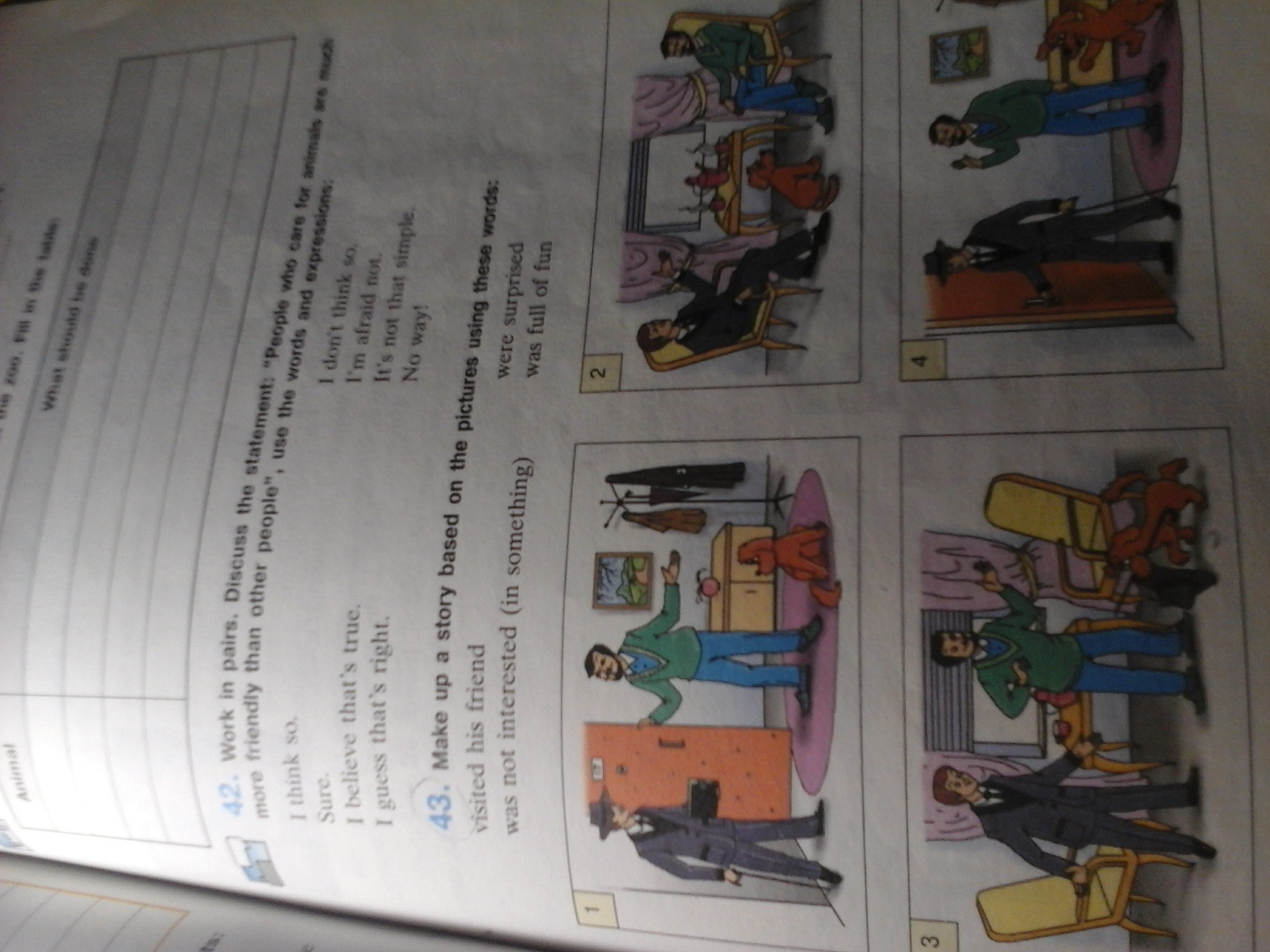 Запишите историю, смотря на картинки и используя эти слова: