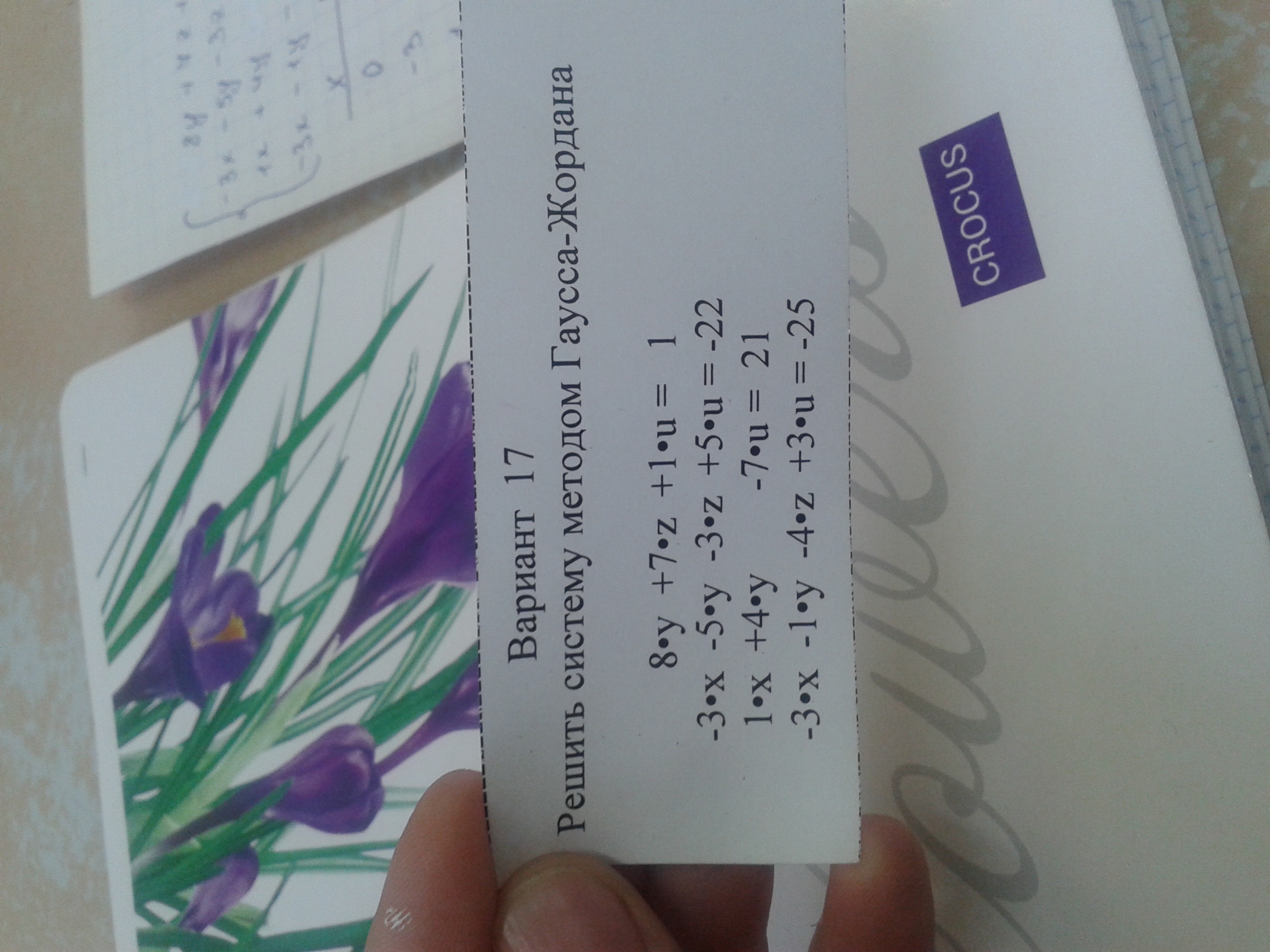 там вместо u подставили (-4). Было 9z+5u=7, 9z+5*(-4)=7. решая это уравнение, получаете z=3