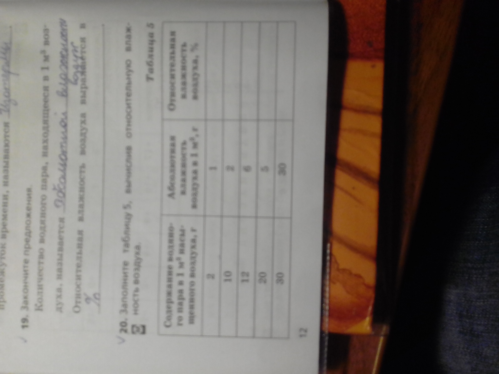 Заполни таблицу 5,вычисли относительную влажность воздуха. ОТВЕТЬТЕ ПЛИЗ!!!!!!!!!!1!!!