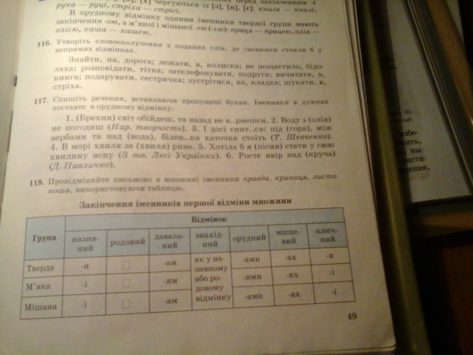 Спишіть речення вставляючі пропущені букви.Іменникі в дужках поставьте в орудному відмінку. Вправа 117