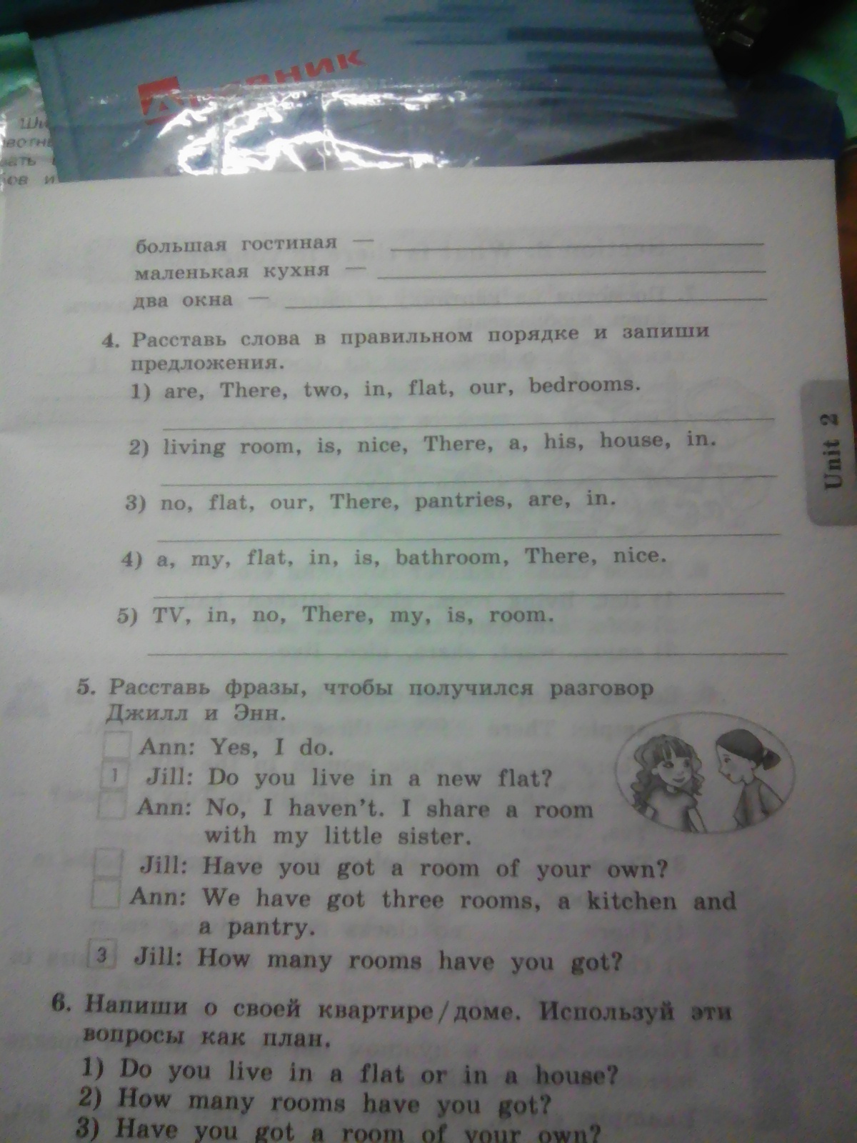 1) There are two bedrooms in our flat. 2) There is a nice living room in his house. 3) There are no pantries in our flat. 4) There is a nice bathroom in my flat. 5) There is no TV in my room.