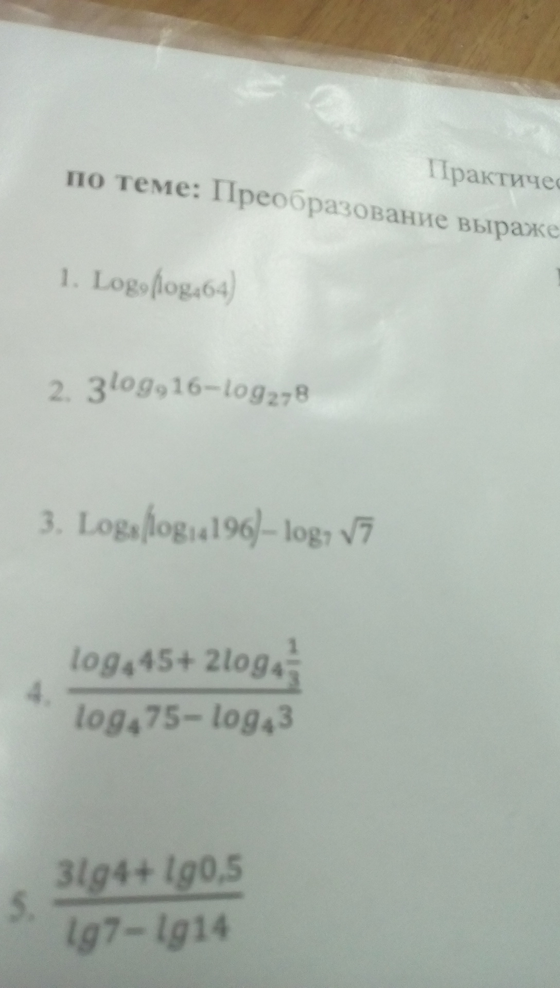 1)0.5 по определениюlog 2)2 применить основное тождество log 3)0 4)2 применить правила log суммы и разности