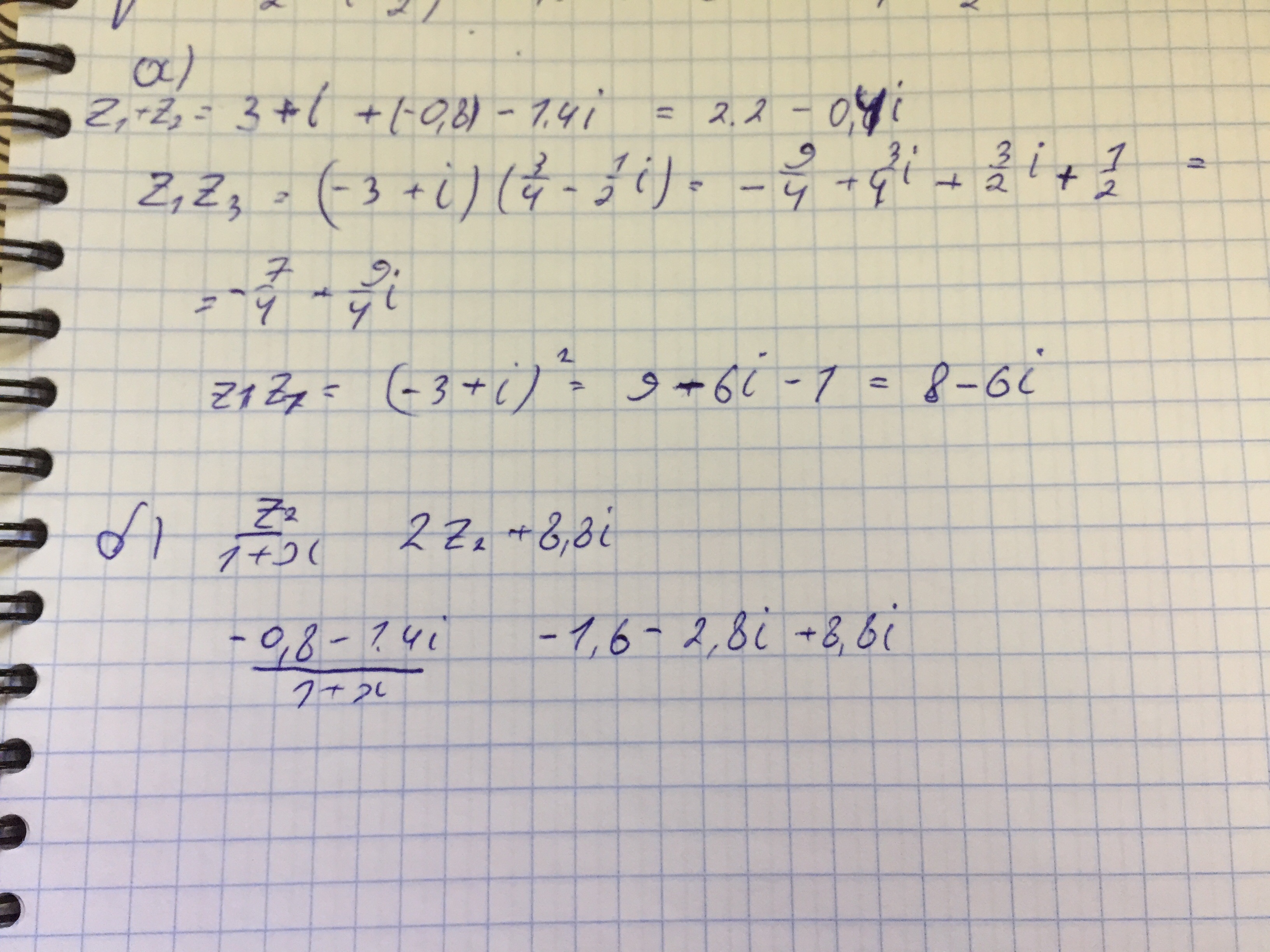 Даны комплексные числа: z1=-3+i; z2=-0,8-1,4i; z3=3/4-1/2i