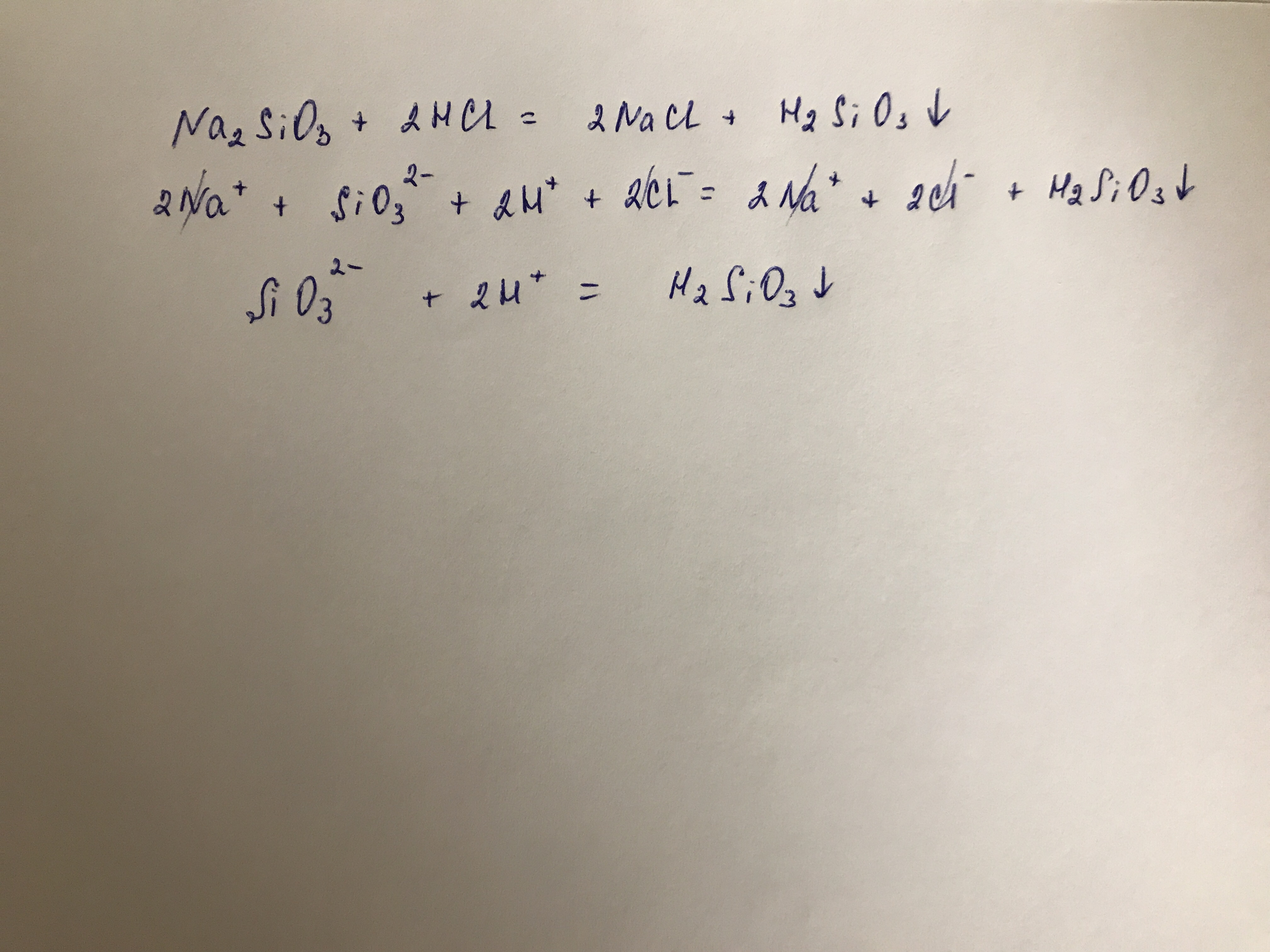 Ответ на листочке, молекулярное уравнение, затем идёт полное ионное и потом на третьей строчке сокращённое ионное уравнение