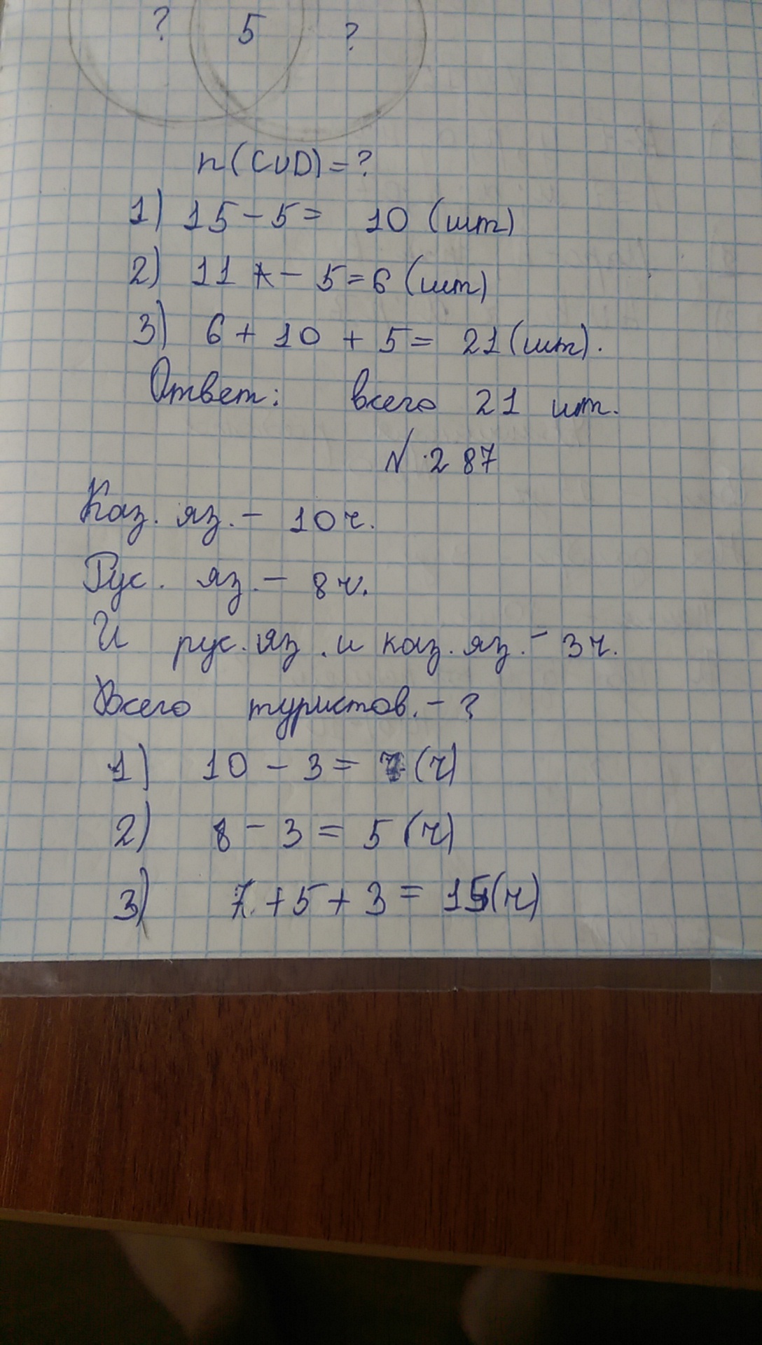 среди туристов приехавших в город 10 человек знают казахский язык 8 человек знает русский язык в том числе 3 человека владеют из русским и казахским языками сколько туристов прибыло в город. срочно