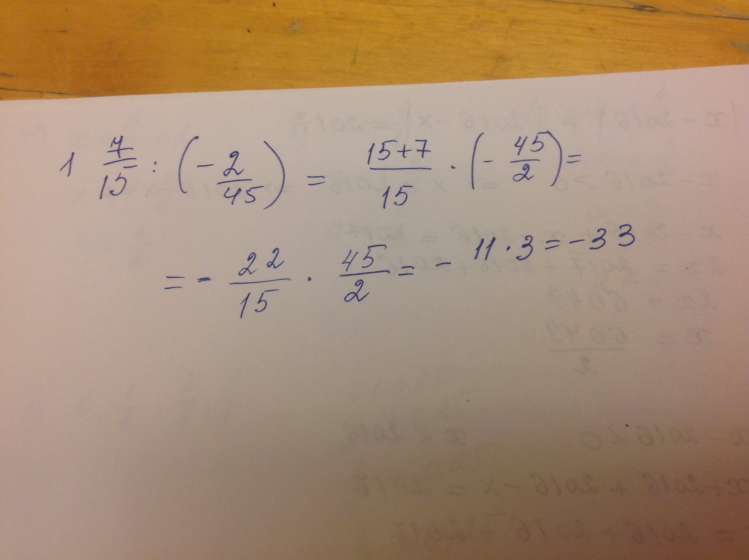1 7/15 / -2/45 = -33