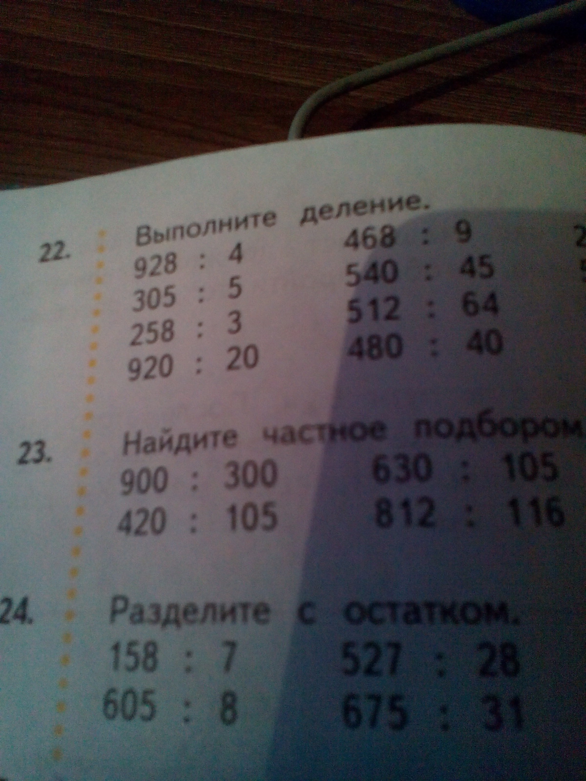928 : 4 =232 305:5= 61 258:3= 86 920:20=46 468:9=52 540:45= 12 512:64=8 480:40= 12