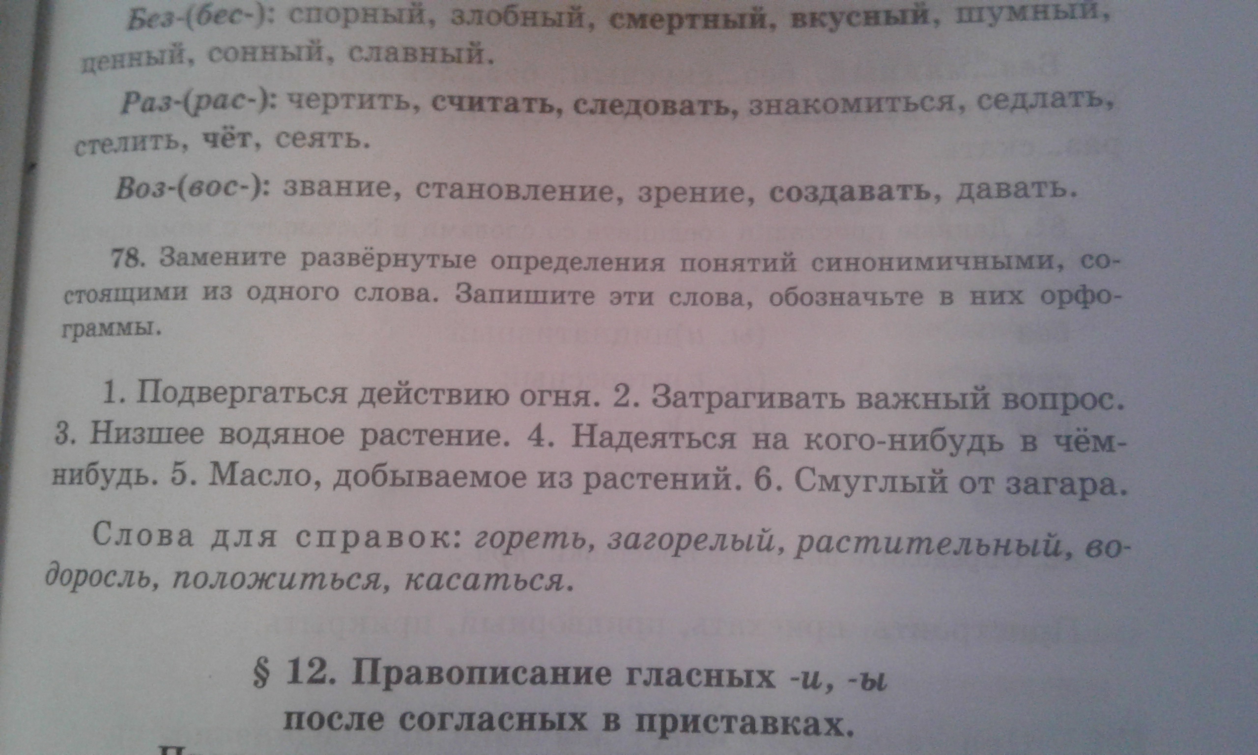 1) гореть2) обсуждать3) водоросль4) полагаться 5)растительное 6)загорелый