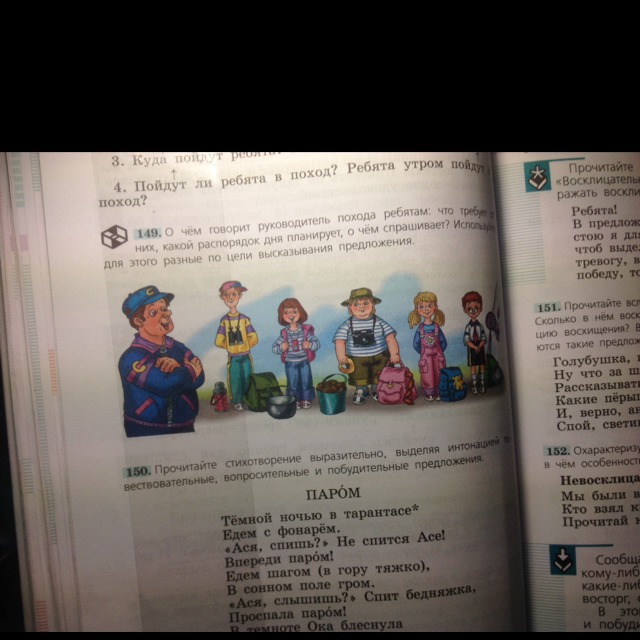 Руководитель похода говорит ребятам, что они должны не бросать мусор, не кидать камни, не бродить по лесу одному и помогать друг другу. Слушать руководителя похода внимательно и не ругаться.