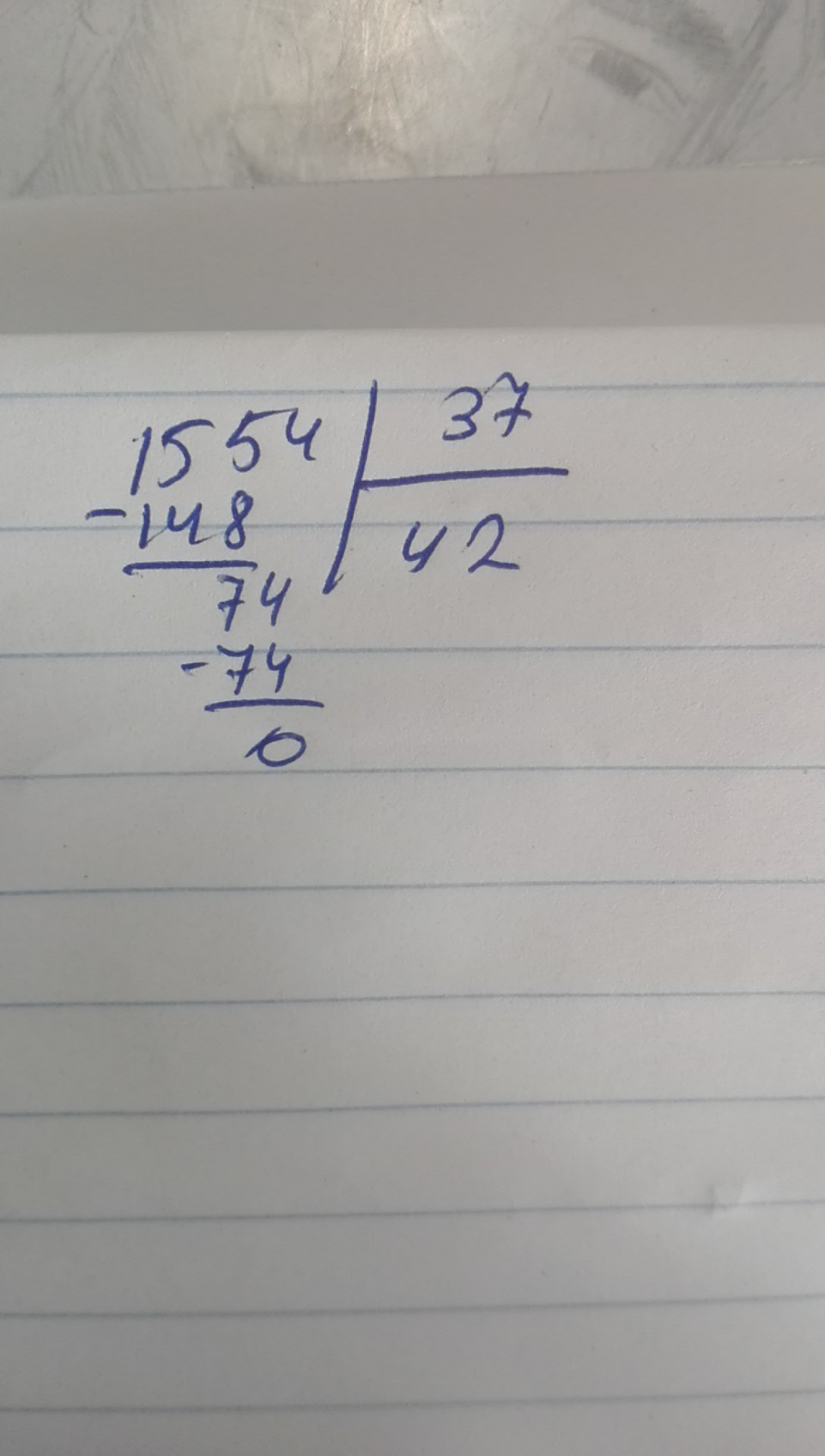 ну хорошо, 155 делишь на 37, нацело не делится, берешь 148, делишь, 155-148=7, сносишь 4, 74:37=2, воь
