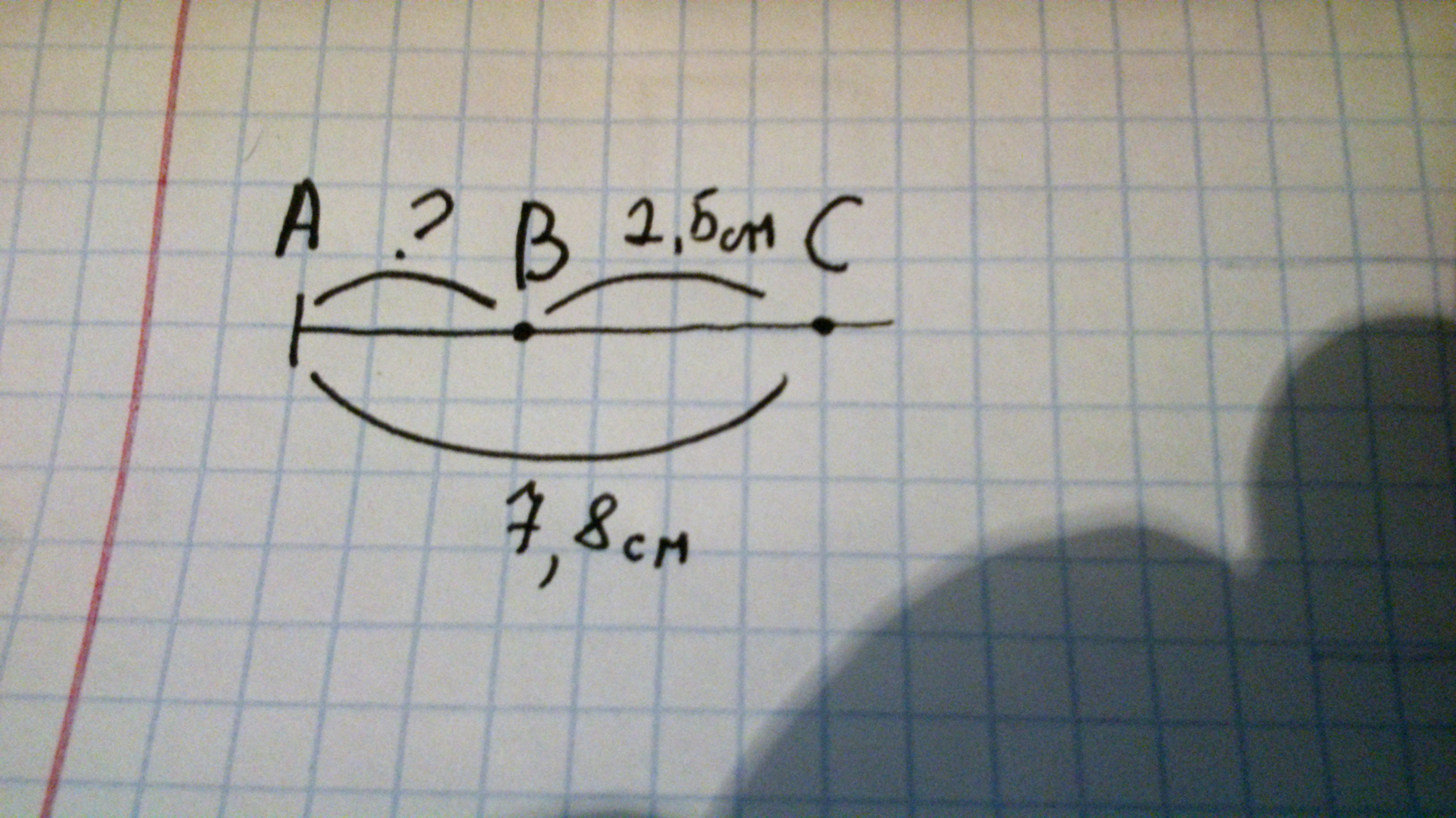 На луче с началом в точке А отмечены точки В и С. Известно, что АС равно 7,8см, ВС равно 2,5 см. Какую длину может иметь отрезок АВ