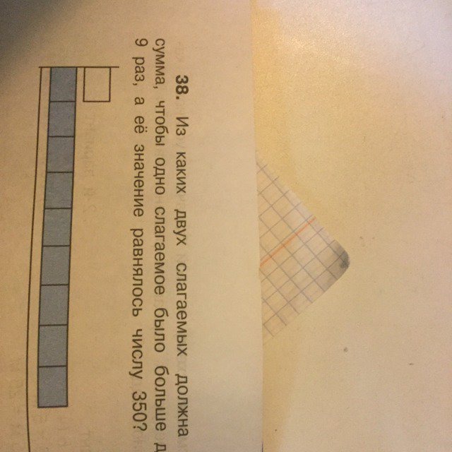 Из каких двух слагаемых должна состоять сумма чтобы одно слагаемое было больше другого в 9 раз а её значение равнялось числу 350
