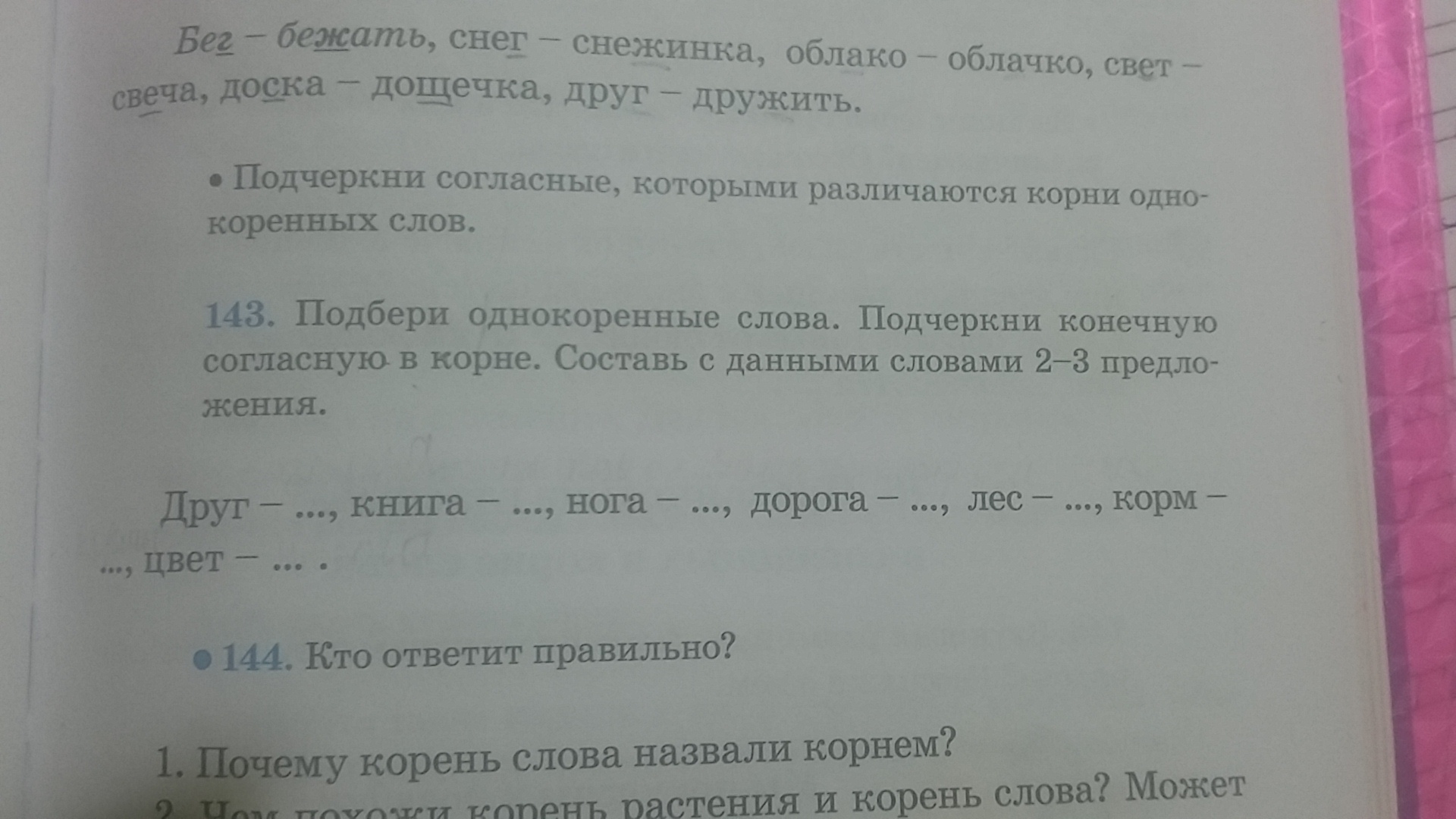 друг-дружба, книга-книжный, нога-длинноногий, дорога-придорожный, лес-лесок, корм-кормовой, цветок-цветочный