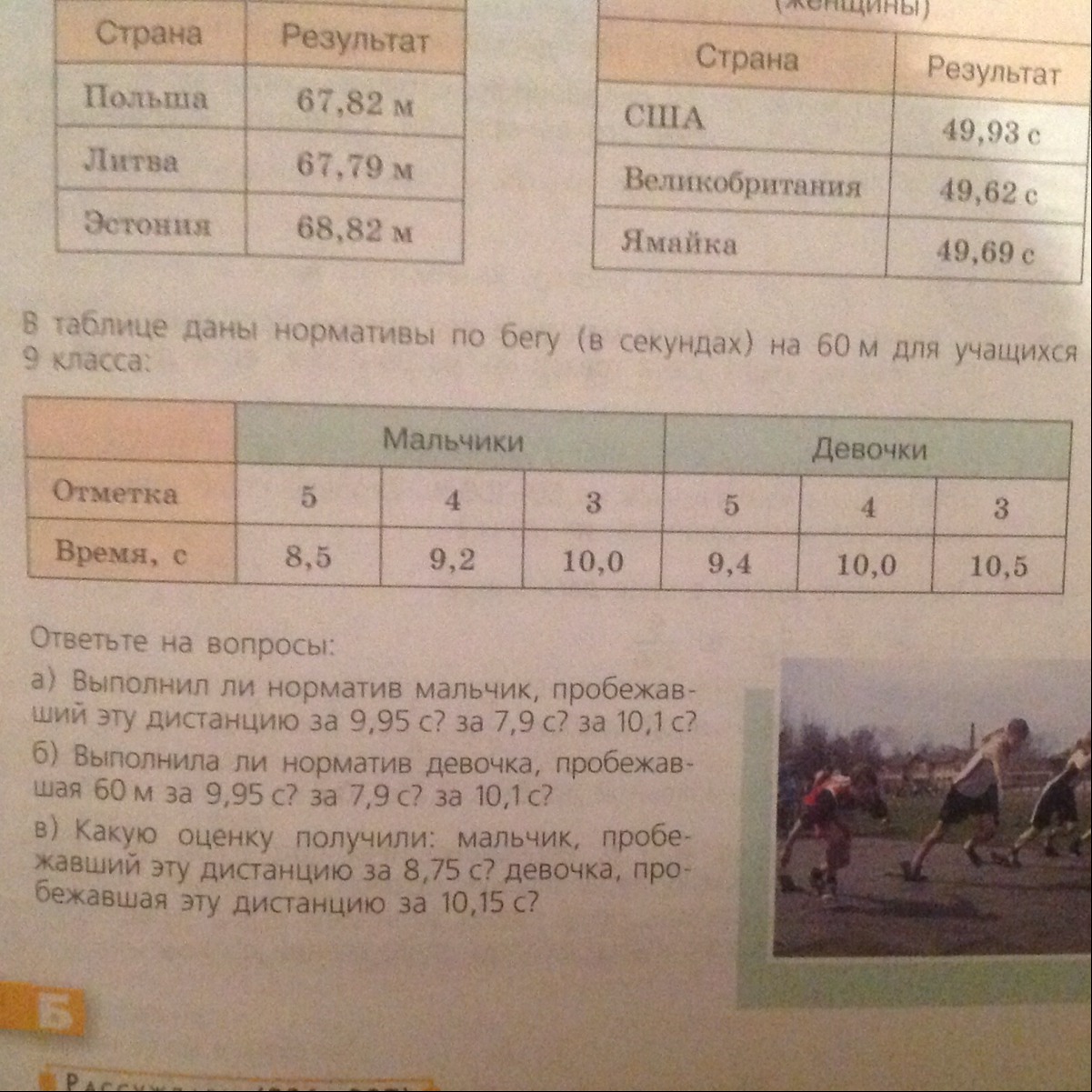 В таблице даны нормативы по бегу (в секундах) на 60 м для учащихся 9 класса: