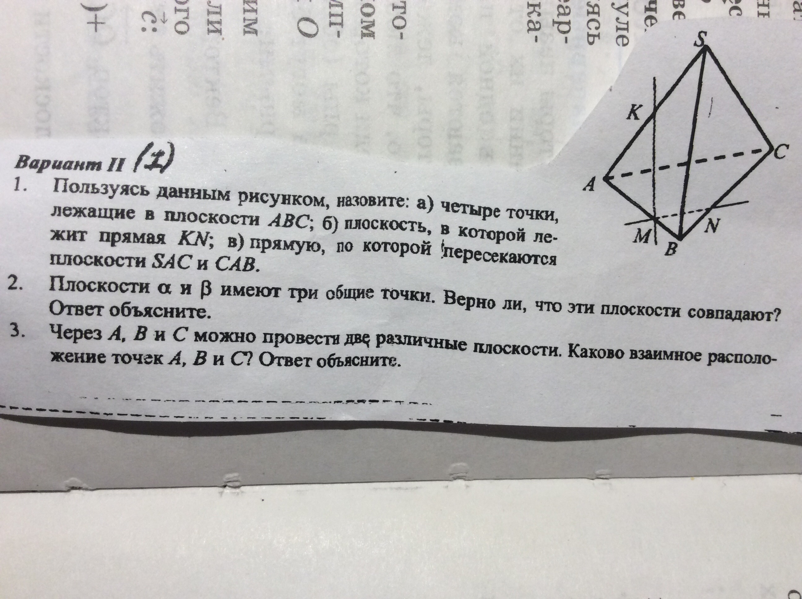 2) через три точки можно провести лишь одну плоскость. Верно.