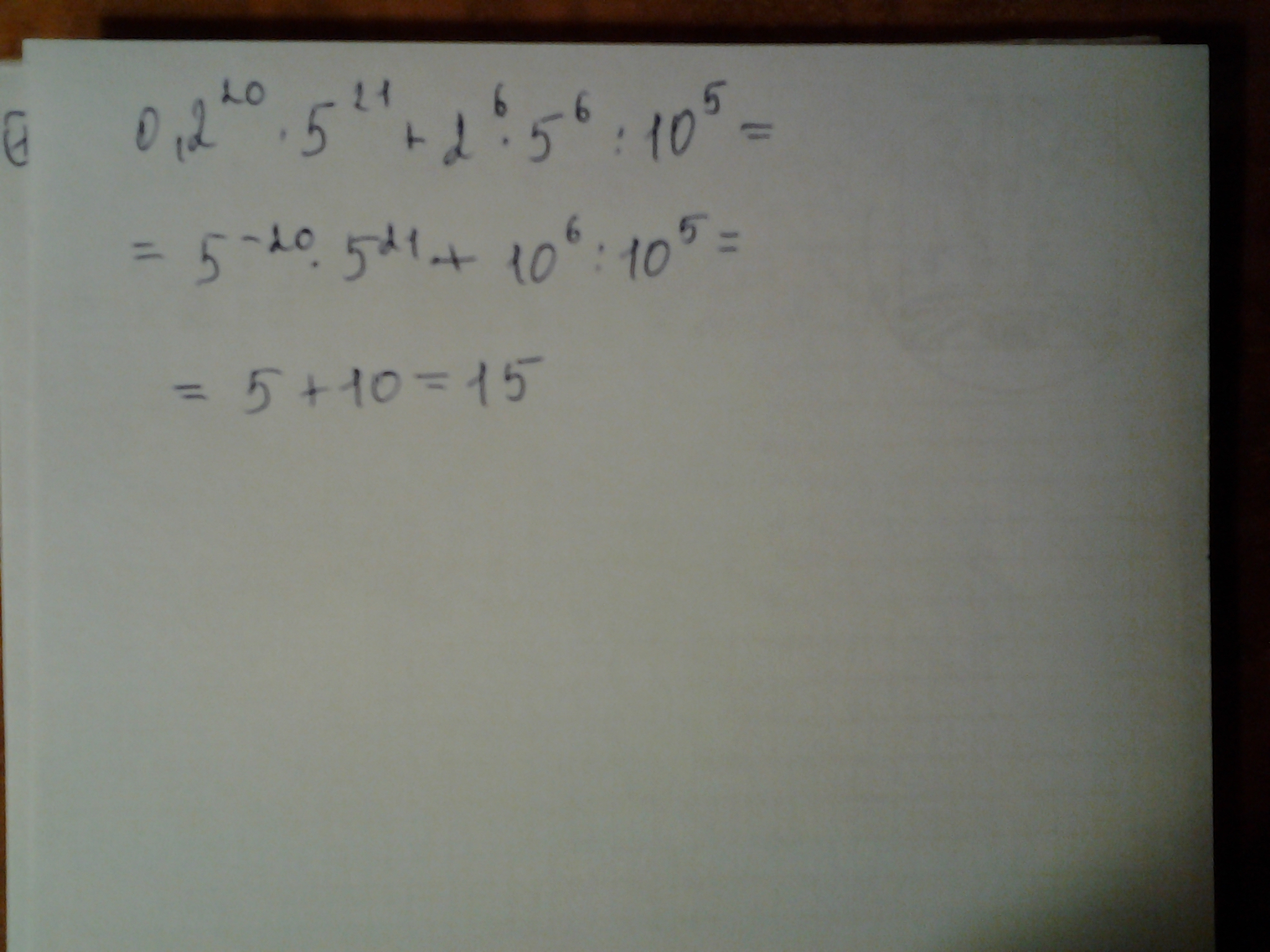 Вычеслить: (0.2) в 20 степени * на 5 в 21 степени + 2 в 6 степени * на 5 в 6 степени : на 10 в 5 степени