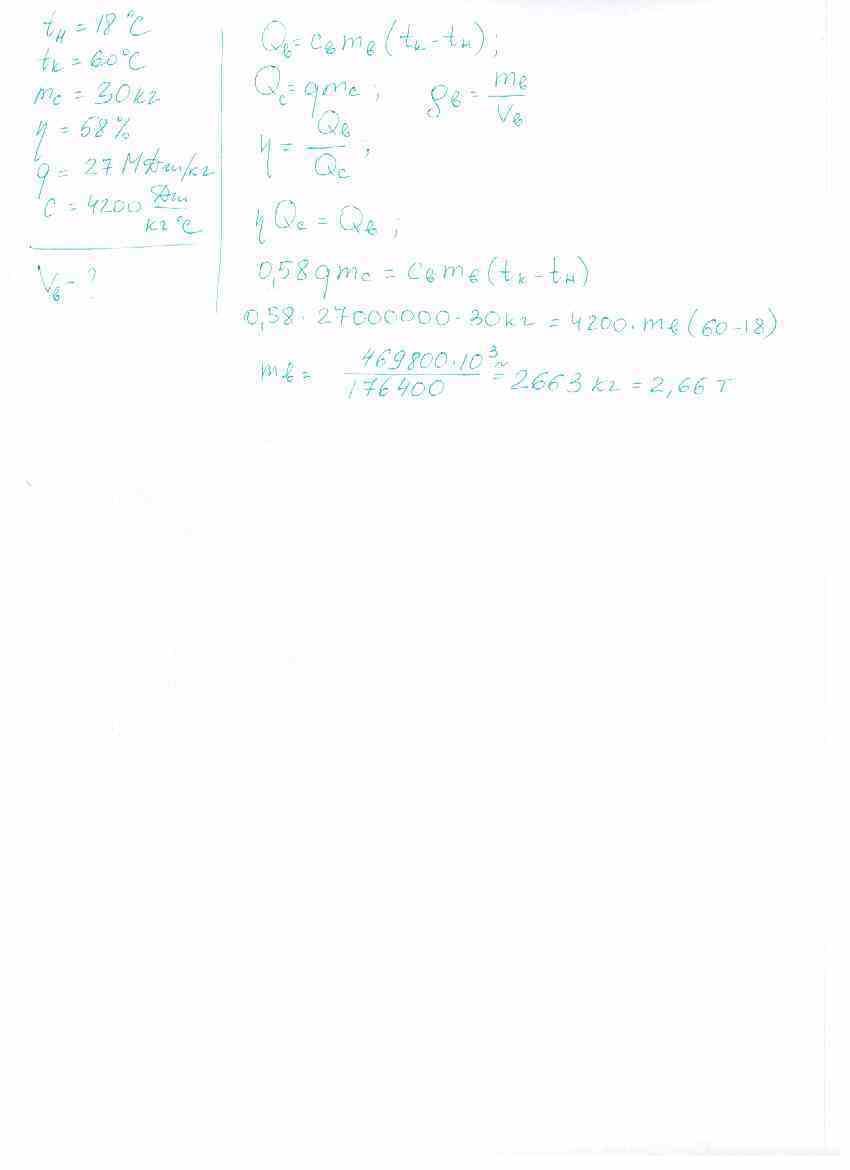какой объем воды взятой при температуре t=18 можно нагреть до температуры t=60 при сжигании спирта массой m2=30, если учесть, что a=58% теплоты, выделенной при сгорании спирта, затрачено непроизводительнл? Удельная теплоёмкость сгорания спирта q=27. Удельная теплоёмкость воды c=4.2*10³ Помогите пожалуйста!