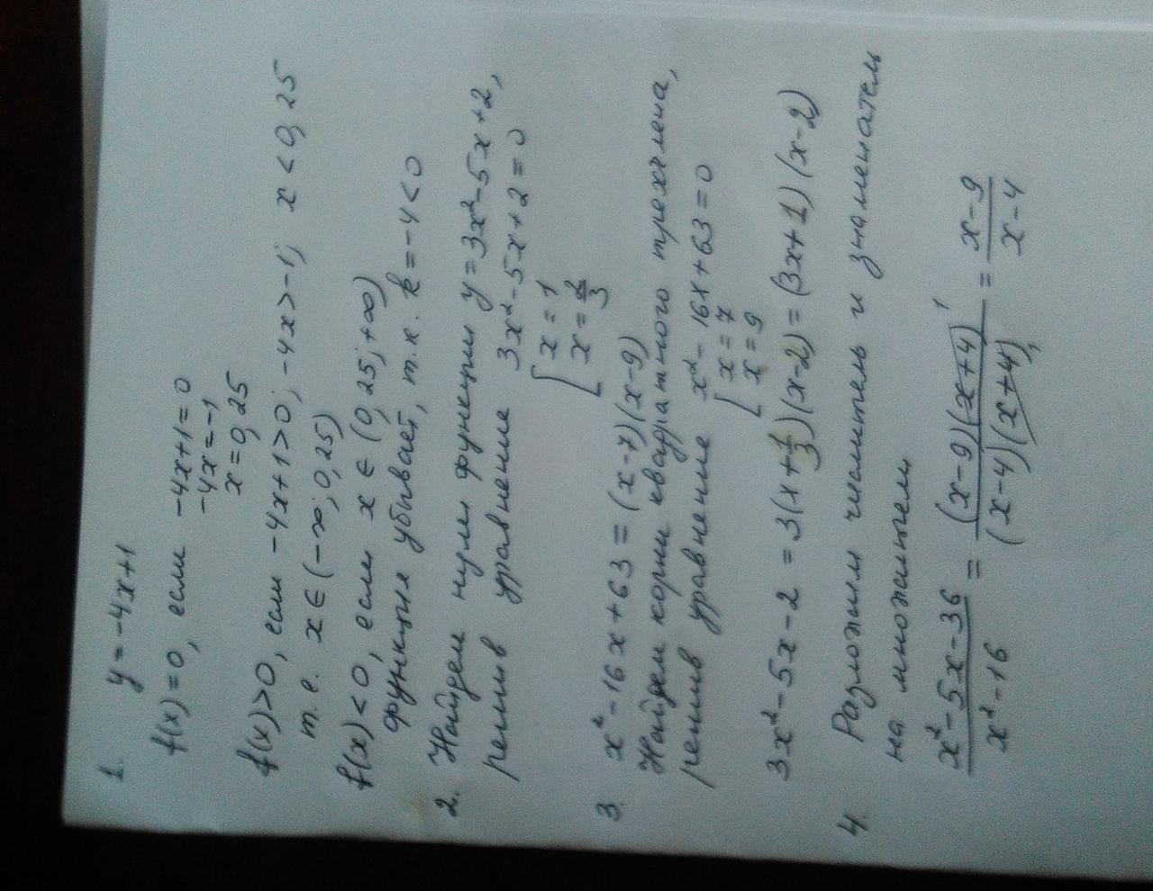 Помогите, умоляю!!! Срочно!!!!А1. Дана функция y= -4x +1 . При каких значениях аргументаx f(x)=0; f(x)< 0 , f(x)> 0 , Является ли эта функция возрастающей или убывающей?