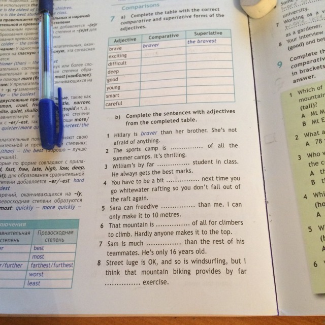 2the best 3 the smartest 4 more careful 5 deeper 6the most difficult 7 younger 8 more exciting