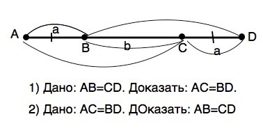 2) Задача обратна первой. Здесь из равных отрезков вычитается один и тот же отрезок.
