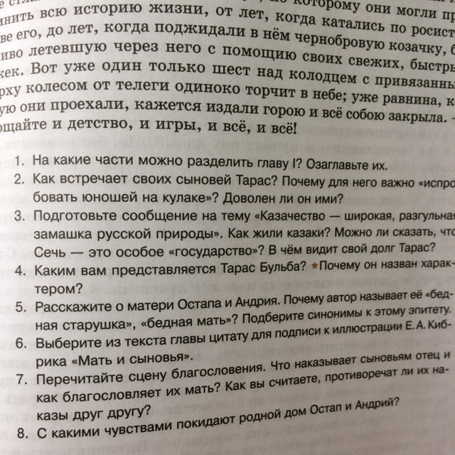4. Образ Тараса Бульбы из одноименной повести Гоголя воплощает в себе все типичные стороны украинского казачества. Человек, полный энергии, не выносящий мирного домашнего существования.Тарас – суровый муж и суровый отец. С оттенком снисходительности относится он к жене, которая, по его словам, только «баба», то есть, существо, бесконечно ничтожное. Она, в его глазах, не пользуется никаким авторитетом, и сыновей своих гоголевский Бульба приучает не подчиняться её влиянию.