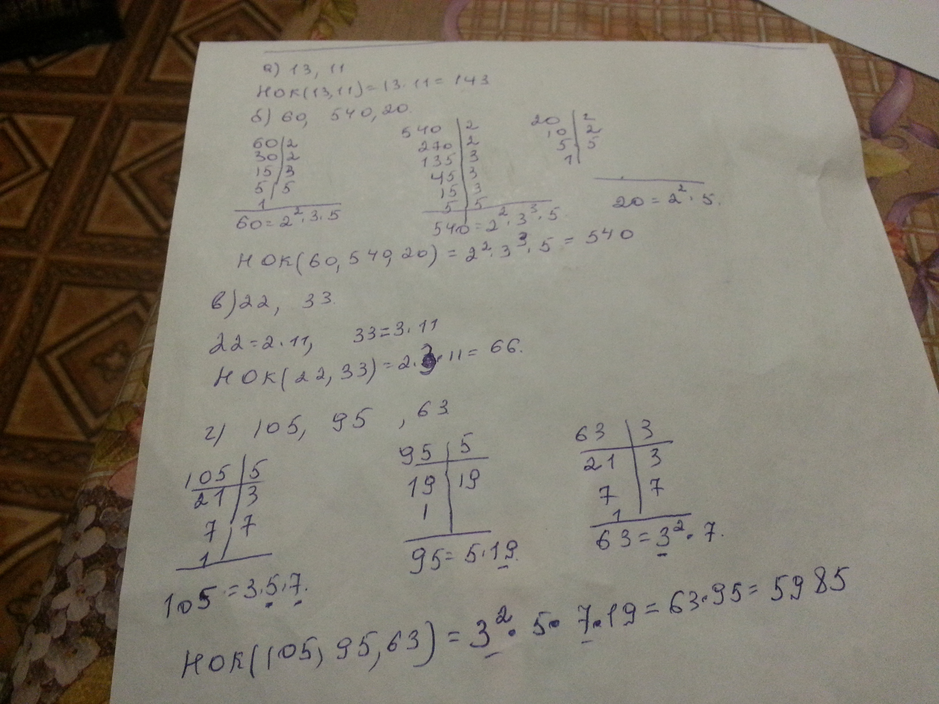 Разложите на простые множители данные числа, и найдите НОК(Наименьшее общее кратное).