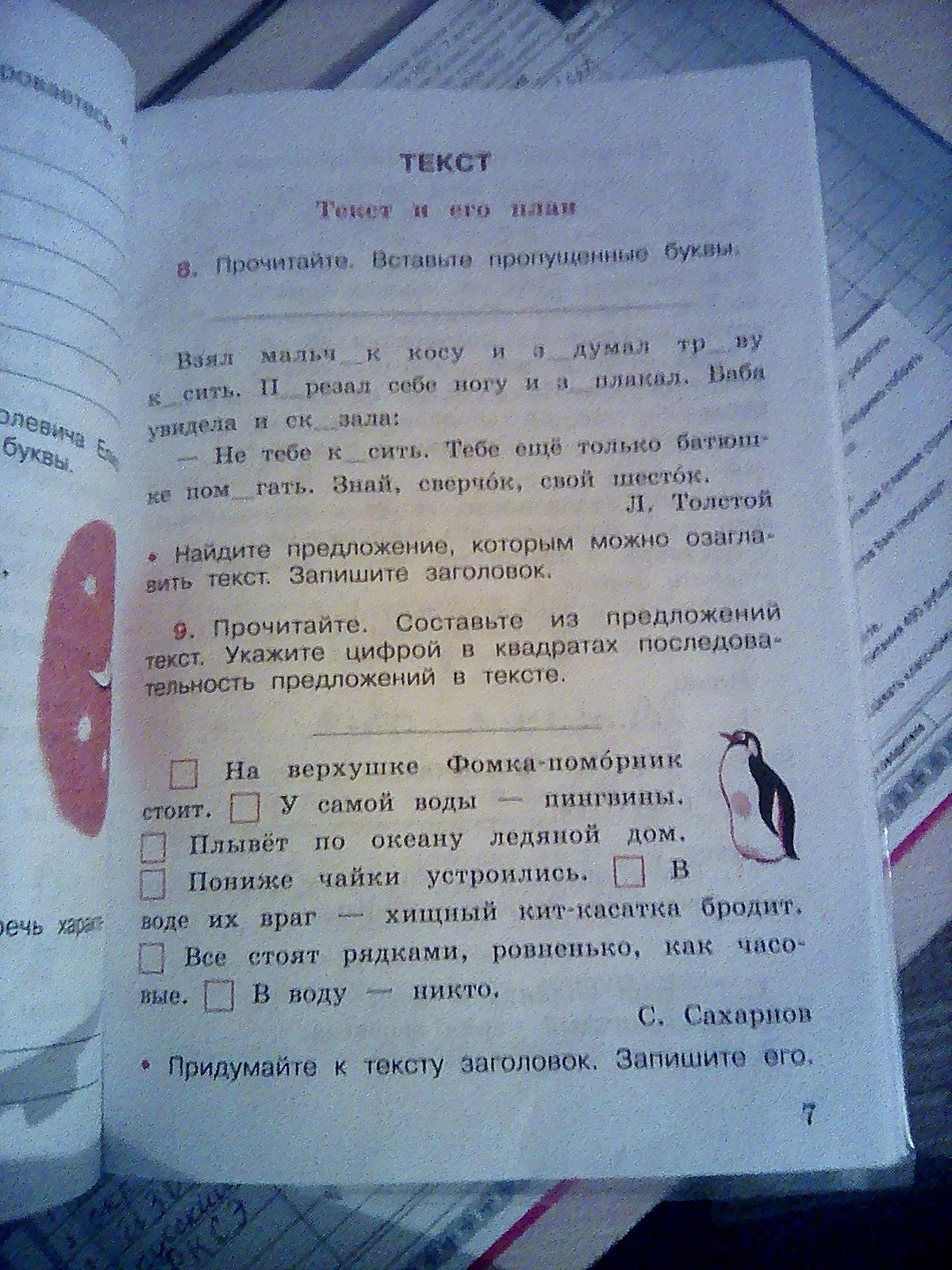 Взял мальчик косу и задумал траву косить . Перерезал себе ногу и заплакал . Баба увидела и сказала : Не тебе косить . Тебе ещё только батюшке помогать . Знай , сверчок , свой шесток .