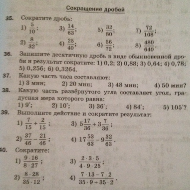Тема:Сокращение дробей